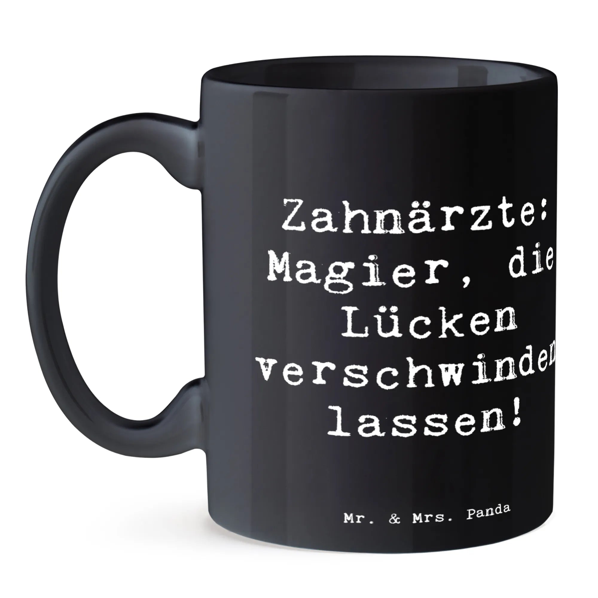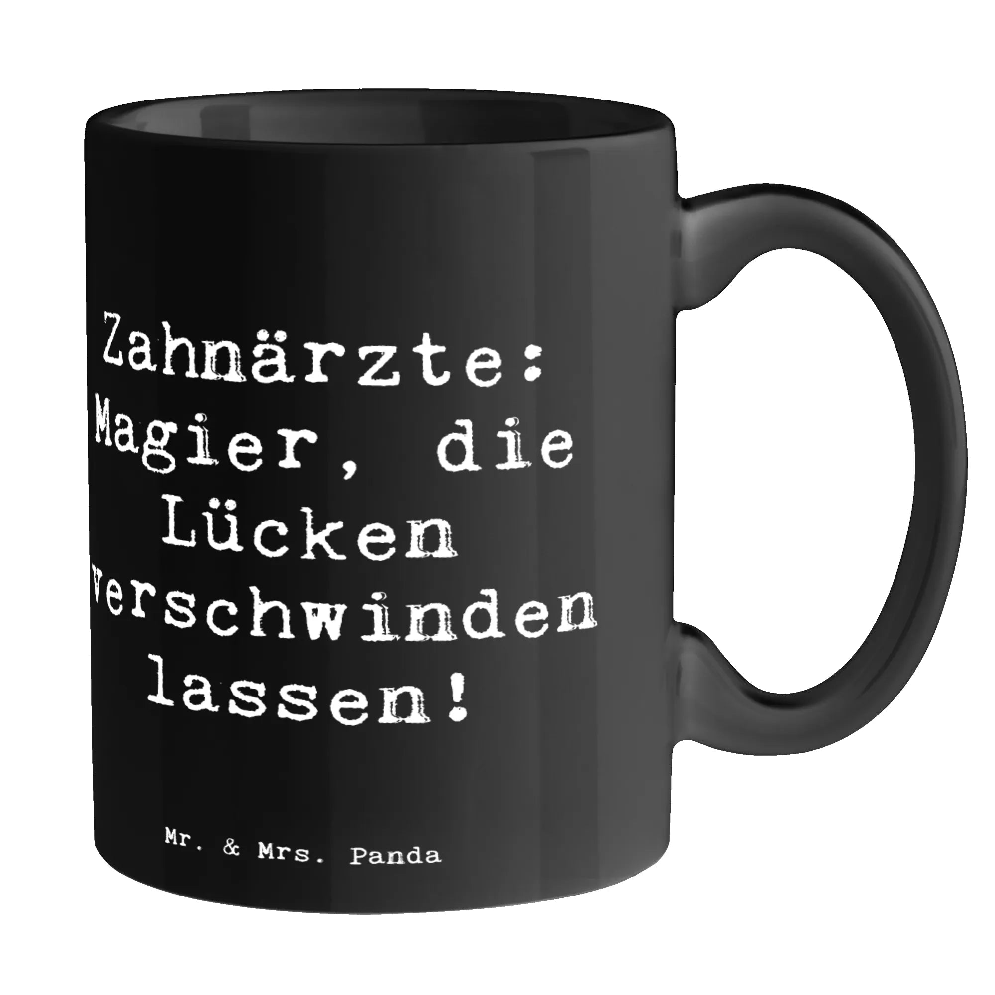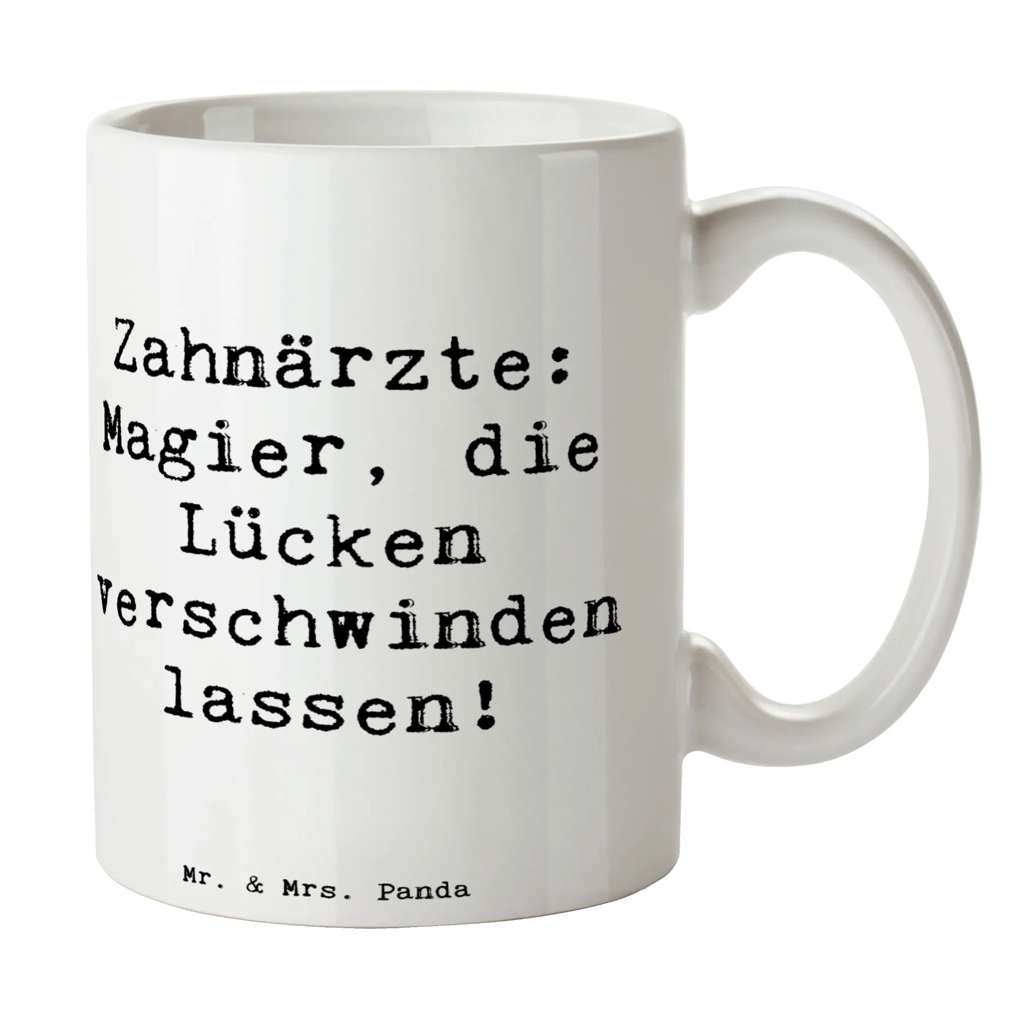 Unsere Mr. & Mrs. Panda Tasse ist voller Charme und perfekt für alle, die im Beruf ein Lächeln schenken: Auf der Tasse steht der fröhliche Spruch „Zahnärzte: Magier, die Lücken verschwinden lassen!“, begleitet von einer zarten Aquarell-Illustration von Mrs. Panda. Dieses Motiv aus der Berufe-Kollektion ist ideal als Geschenk für Zahnärztinnen, Zahnärzte, zahnmedizinische Fachangestellte oder das gesamte Praxisteam.