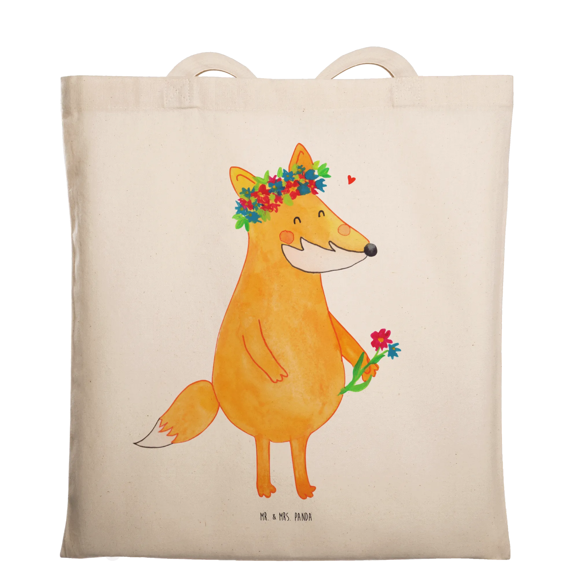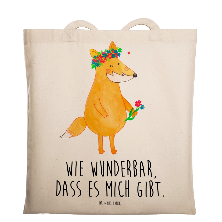 Lass dich verzaubern: Unsere Tragetasche „Fuchs Blumenliebe“ aus der Fuchs-Kollektion von Mr. & Mrs. Panda ist ein fröhlicher Begleiter für jeden Tag. Der niedliche Fuchs mit Blumenkranz auf dem Kopf und Blüten in der Hand steht für Liebe zur Natur, Freundschaft und kleine Freuden. 🌸🦊