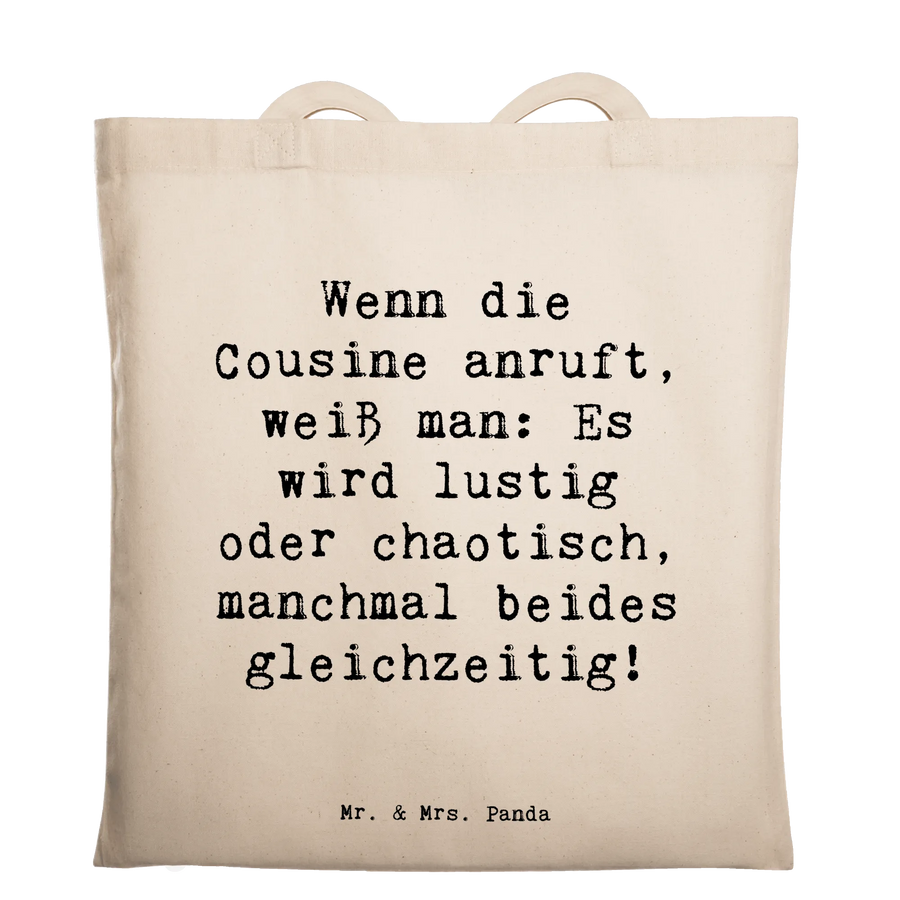 - Angielski (Tote Bag Saying Wenn Die Cousine Anruft Weiss Man Es Wird Lustig Oder Chaotisch Manchmal Beides Gleichzeitig!)