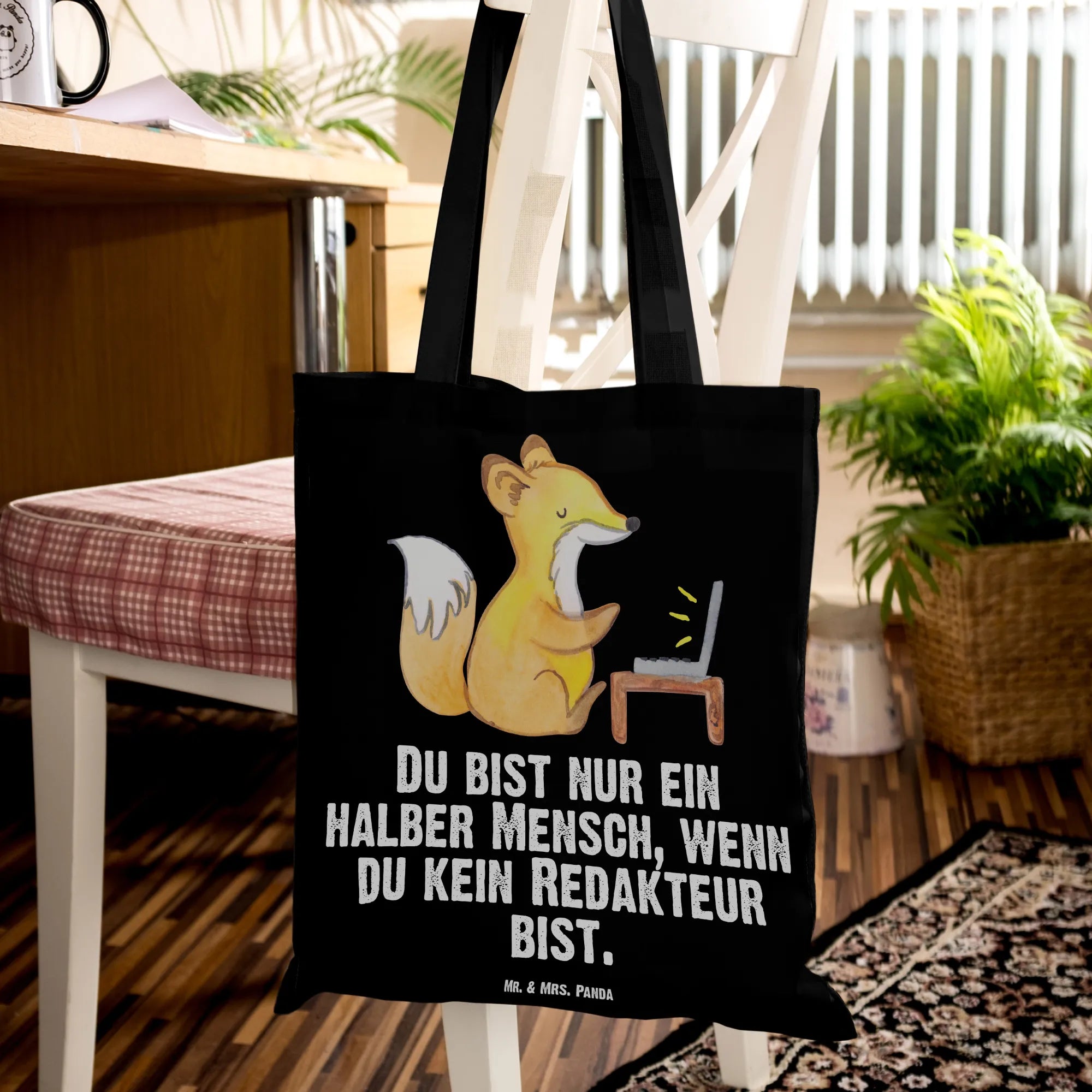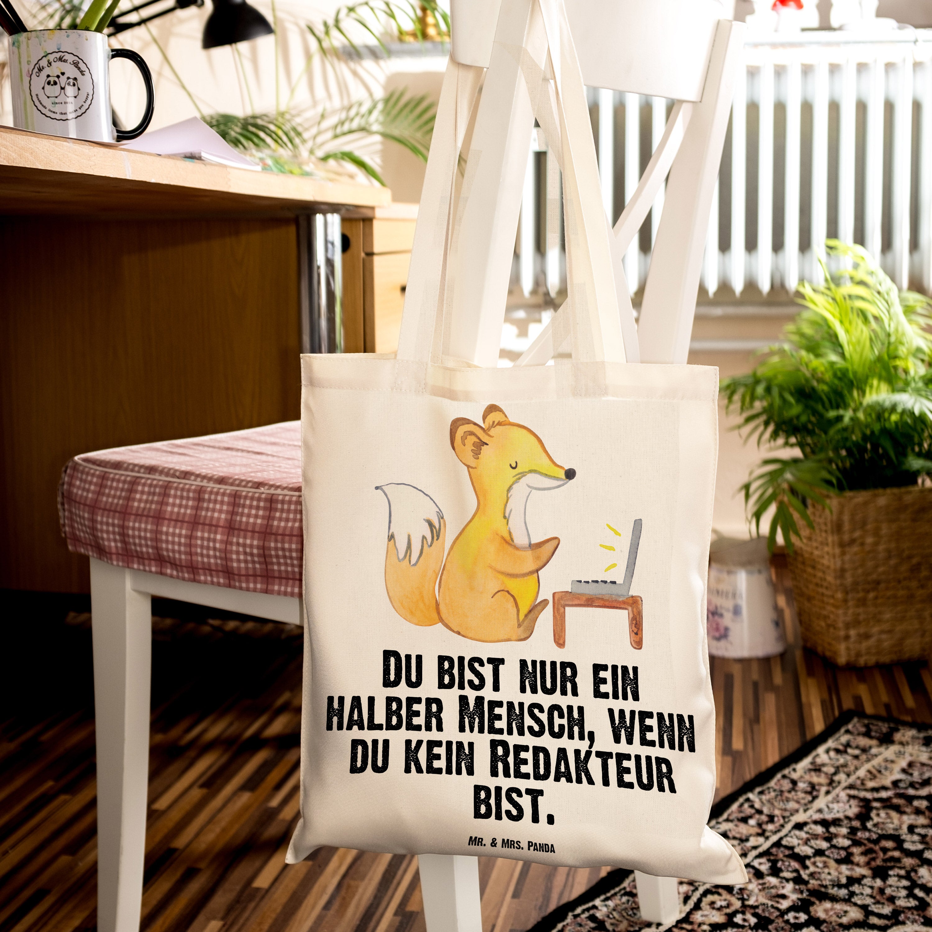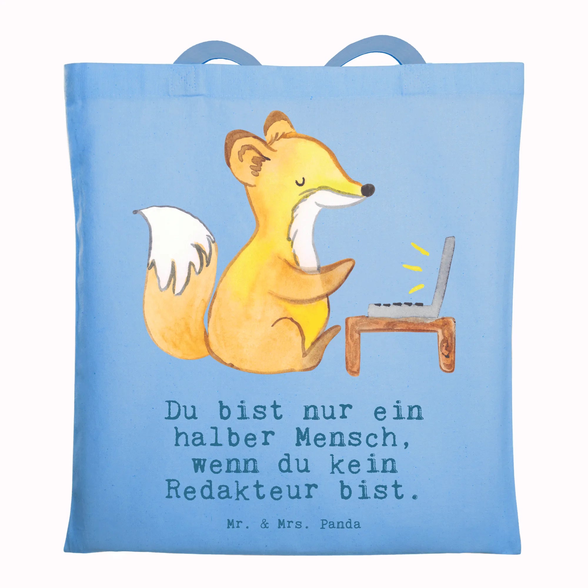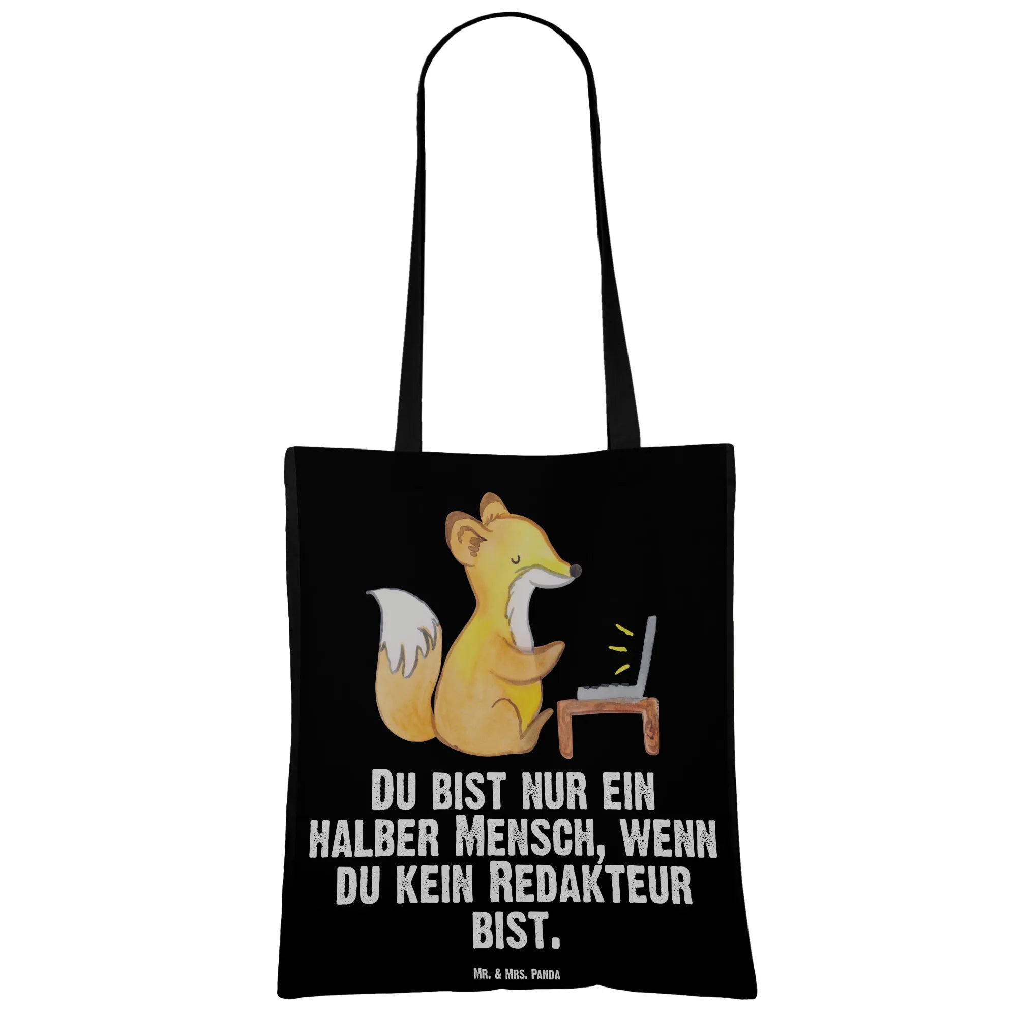 Suchst du ein besonderes Geschenk für einen Redakteur, Journalisten oder eine kreative Kollegin? Unsere liebevoll gestaltete Tragetasche zeigt einen kleinen Fuchs an der Schreibmaschine und den frechen Spruch: „Du bist nur ein halber Mensch, wenn du kein Redakteur bist.“ Ein charmantes Motiv, das Beruf und Persönlichkeit feiert.