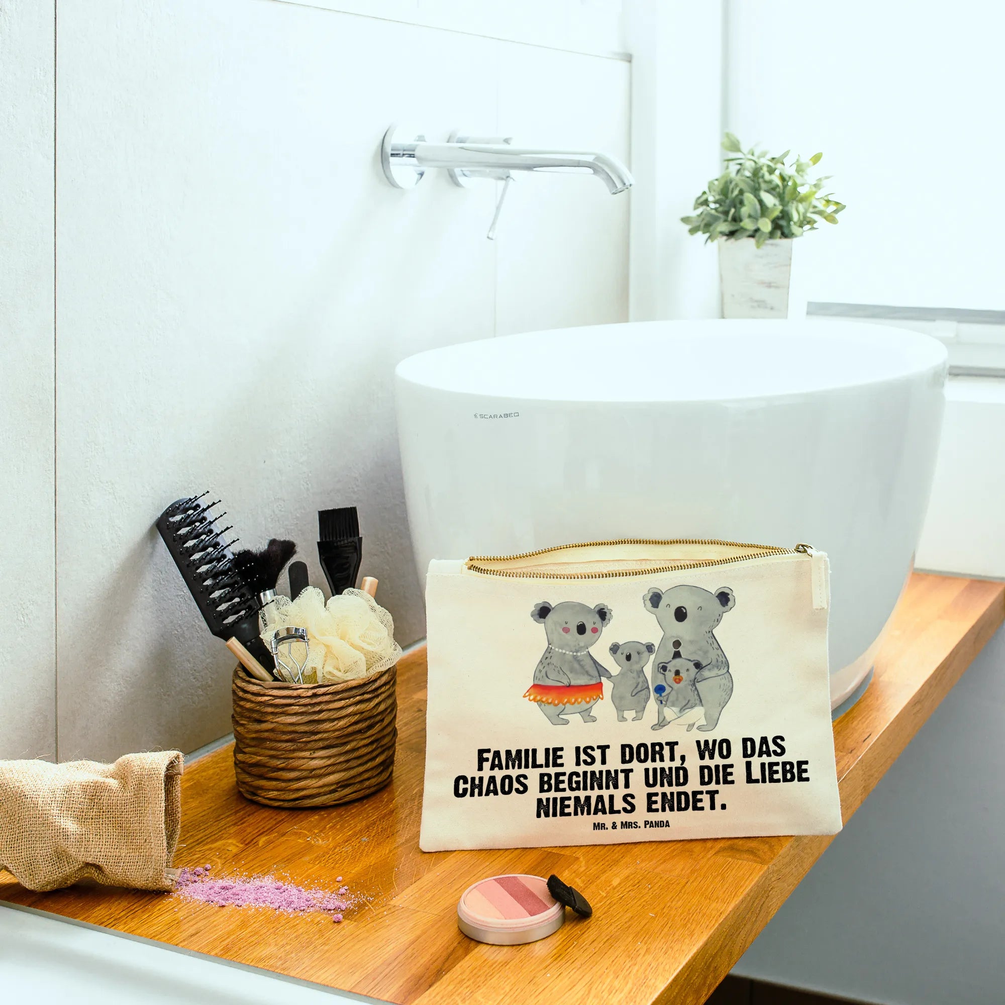 torebka na makijaż Rodzina koali - Rozmiar XL Duży - z napisem