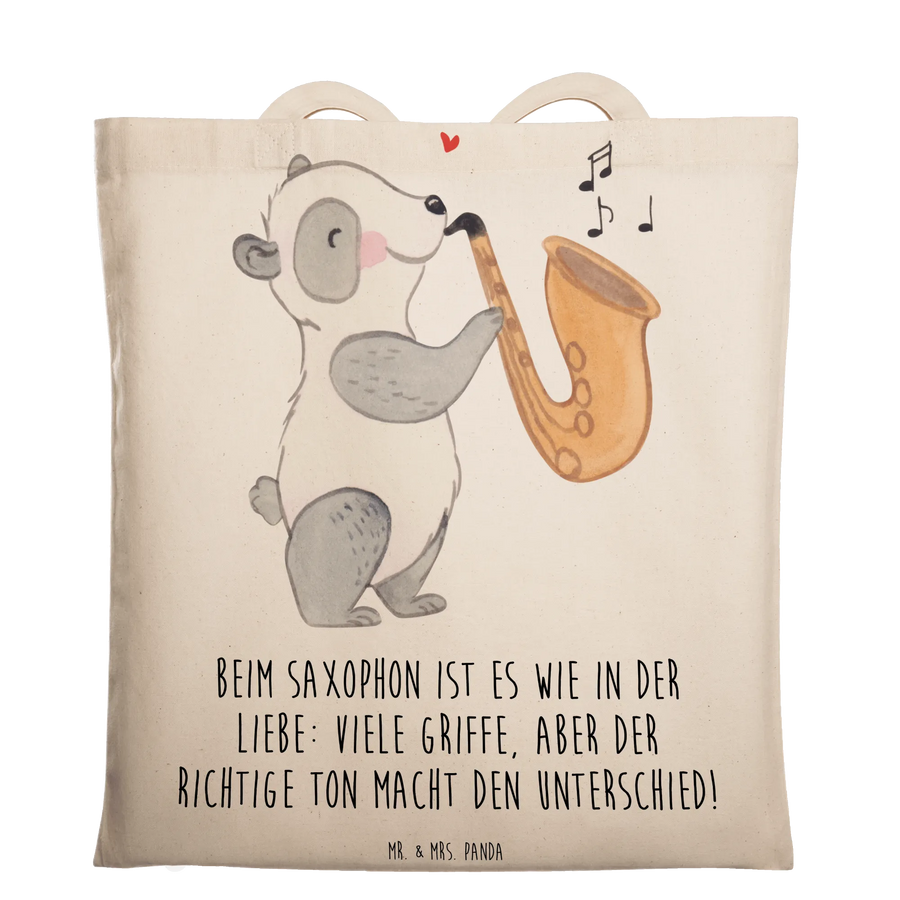 Entdecke die bezaubernde Tragetasche mit Saxophon-Motiv aus der Kollektion 'Musizieren & Instrumente' von Mr. & Mrs. Panda! 🐼