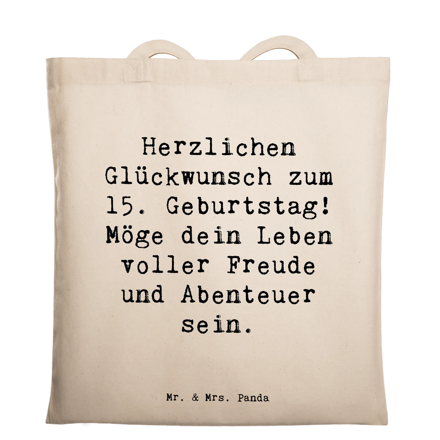 Suchst Du ein liebevolles Geschenk zum 15. Geburtstag? Unsere Tragetasche von Mr. & Mrs. Panda mit dem Spruch „Herzlichen Glückwunsch zum 15. Geburtstag! Möge dein Leben voller Freude und Abenteuer sein.“ ist genau das Richtige. Sie vereint Alltagstauglichkeit mit einer persönlichen Botschaft und zaubert ein Lächeln auf jedes Geburtstagsgesicht. 🎉