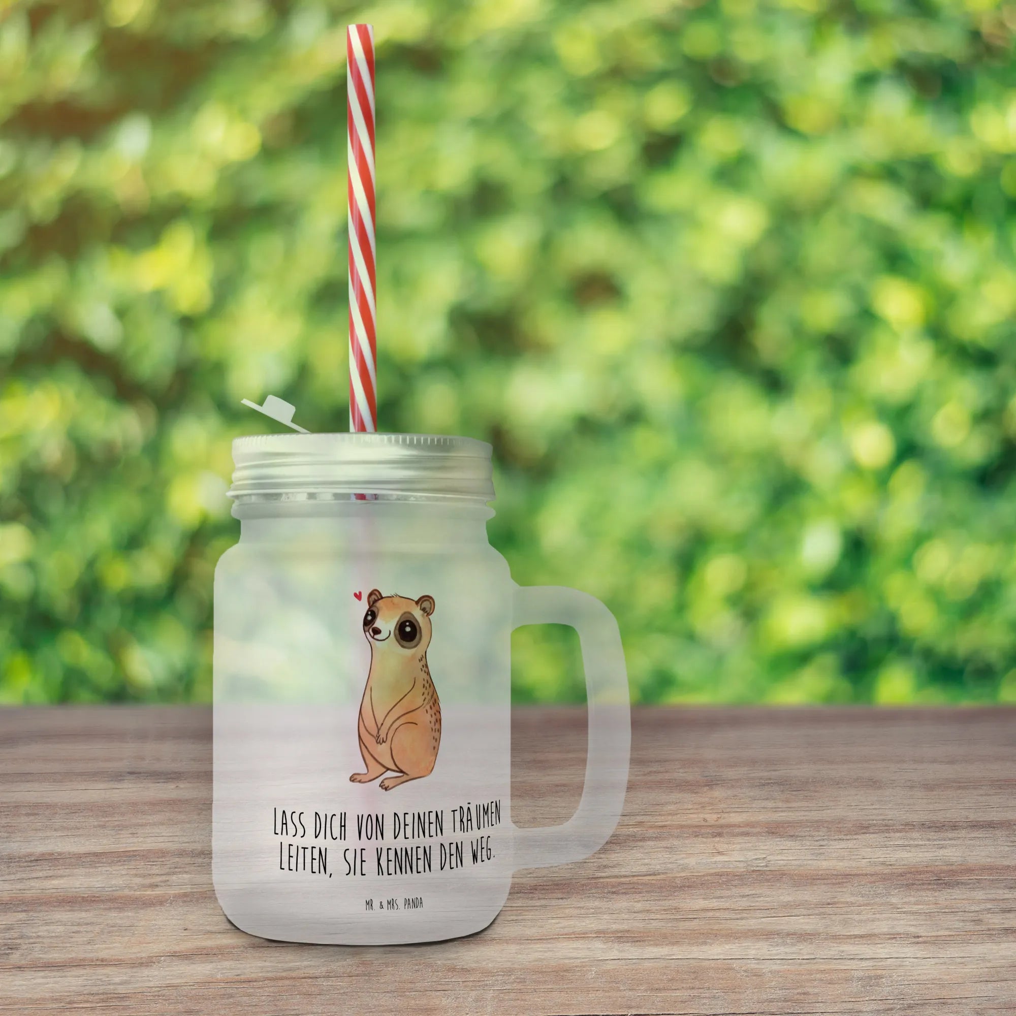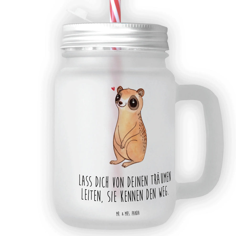 Das Trinkglas Mason Jar 'Plumplori Glücklich' von Mr. & Mrs. Panda ist der perfekte Begleiter für heiße Sommertage und gesellige Nächte. Mit seinem liebevoll designten Plumplori-Motiv zaubert es jedem, der einen Blick darauf wirft, ein Lächeln ins Gesicht. Dieses qualitätsvolle Glas aus satiniertem, dickwandigem Premiumglas ist nicht nur ästhetisch ansprechend, sondern auch praktisch.