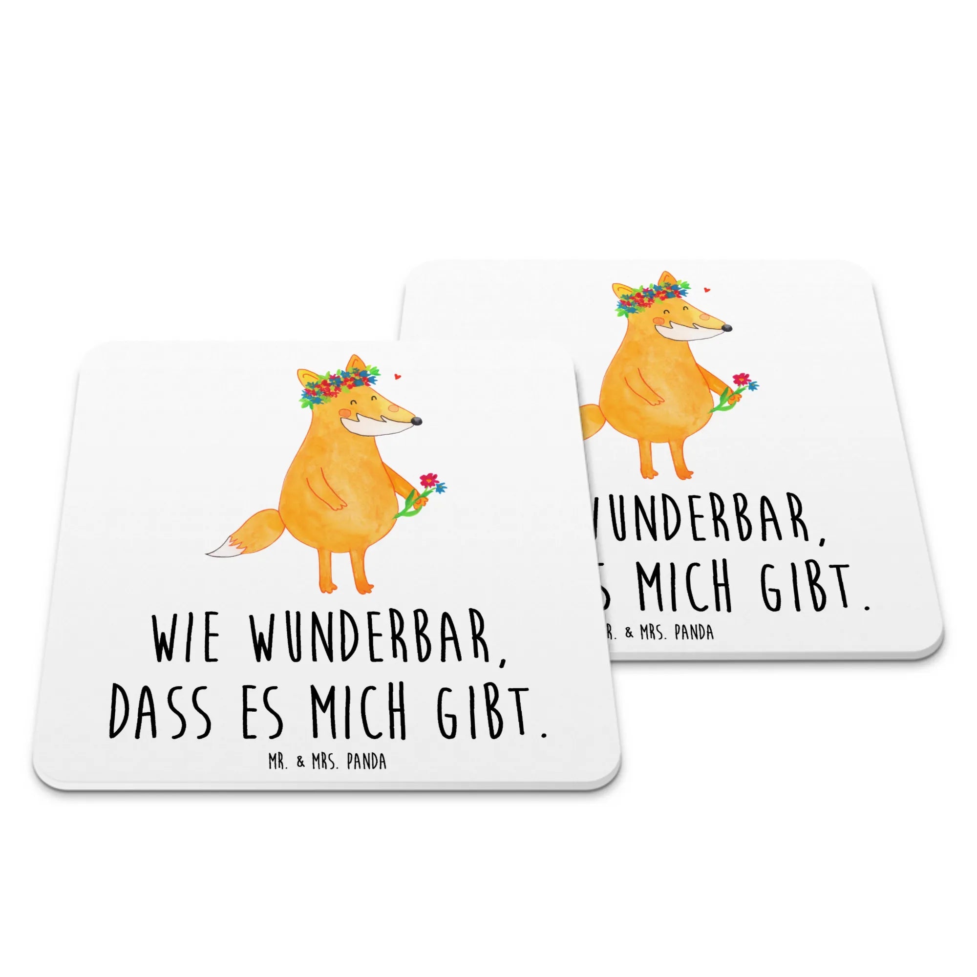 Untersetzer Set Fuchs Blumen - 15er Set - mit Spruch