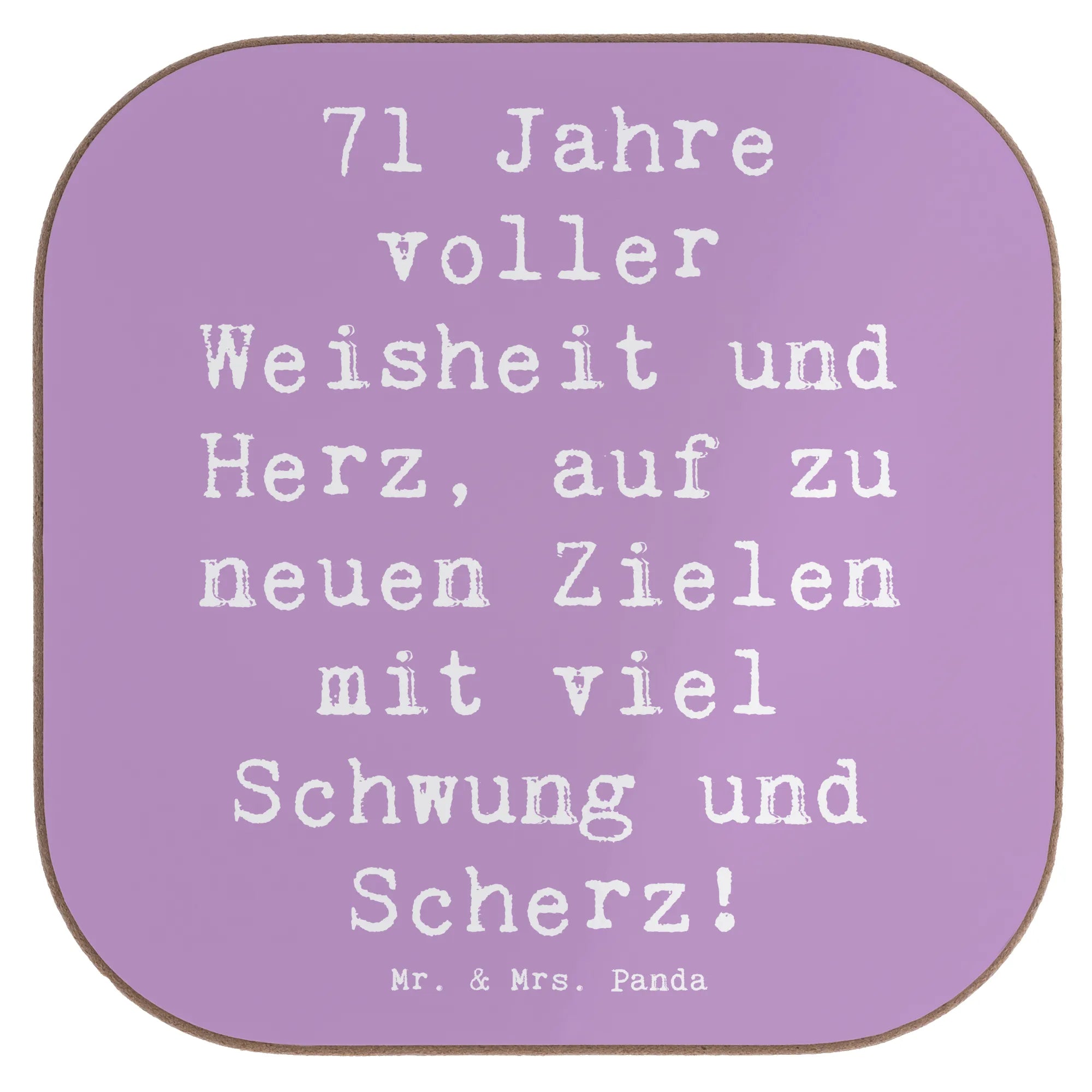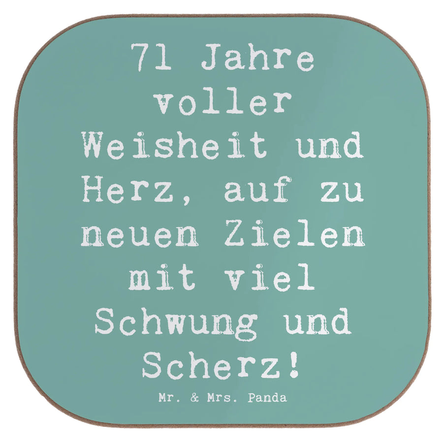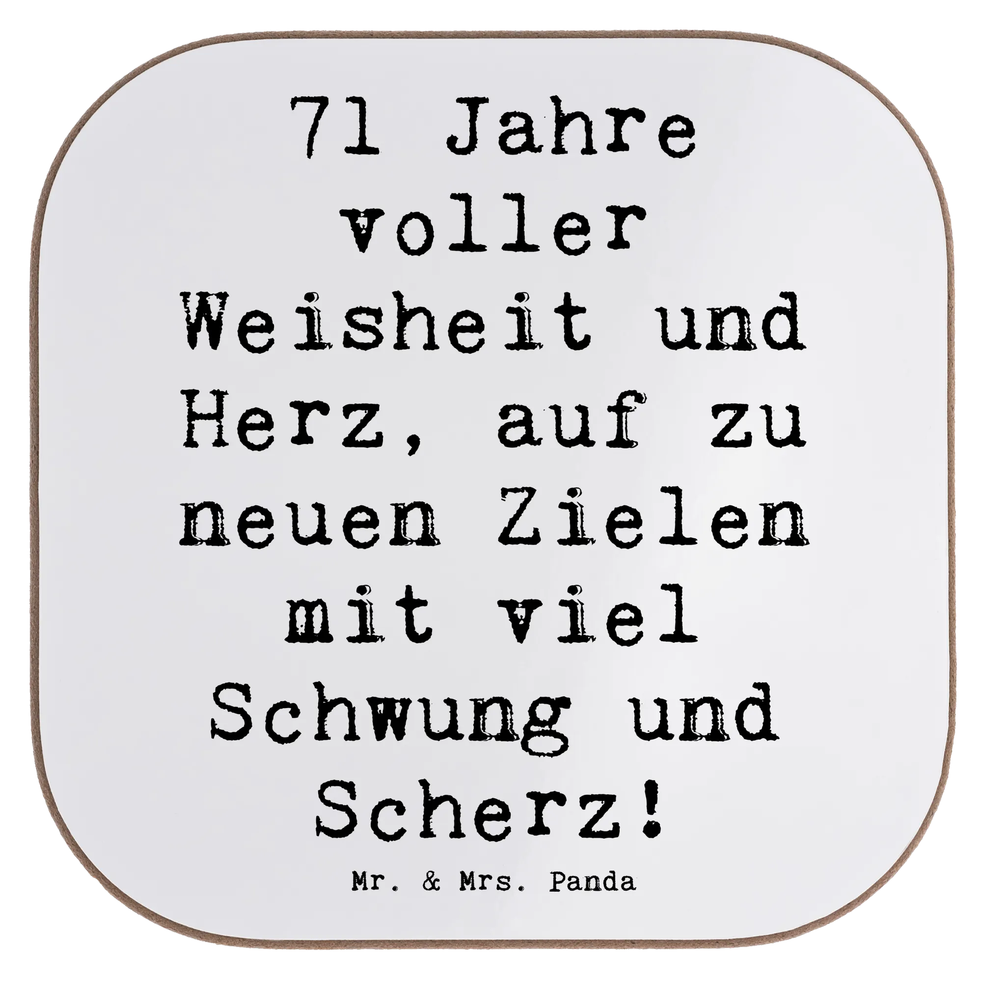Der perfekte Untersetzer zum 71. Geburtstag für all die besonderen Momente! Mit einem charmanten Spruch, der direkt ins Herz geht: "71 Jahre voller Weisheit und Herz, auf zu neuen Zielen mit viel Schwung und Scherz!" Dieser wunderschöne quadratische Untersetzer von Mr. & Mrs. Panda ist mehr als nur ein praktisches Accessoire – er ist ein liebevolles Geschenk, das Deinen Tisch schmückt und die Stimmung bei jeder Feier hebt.