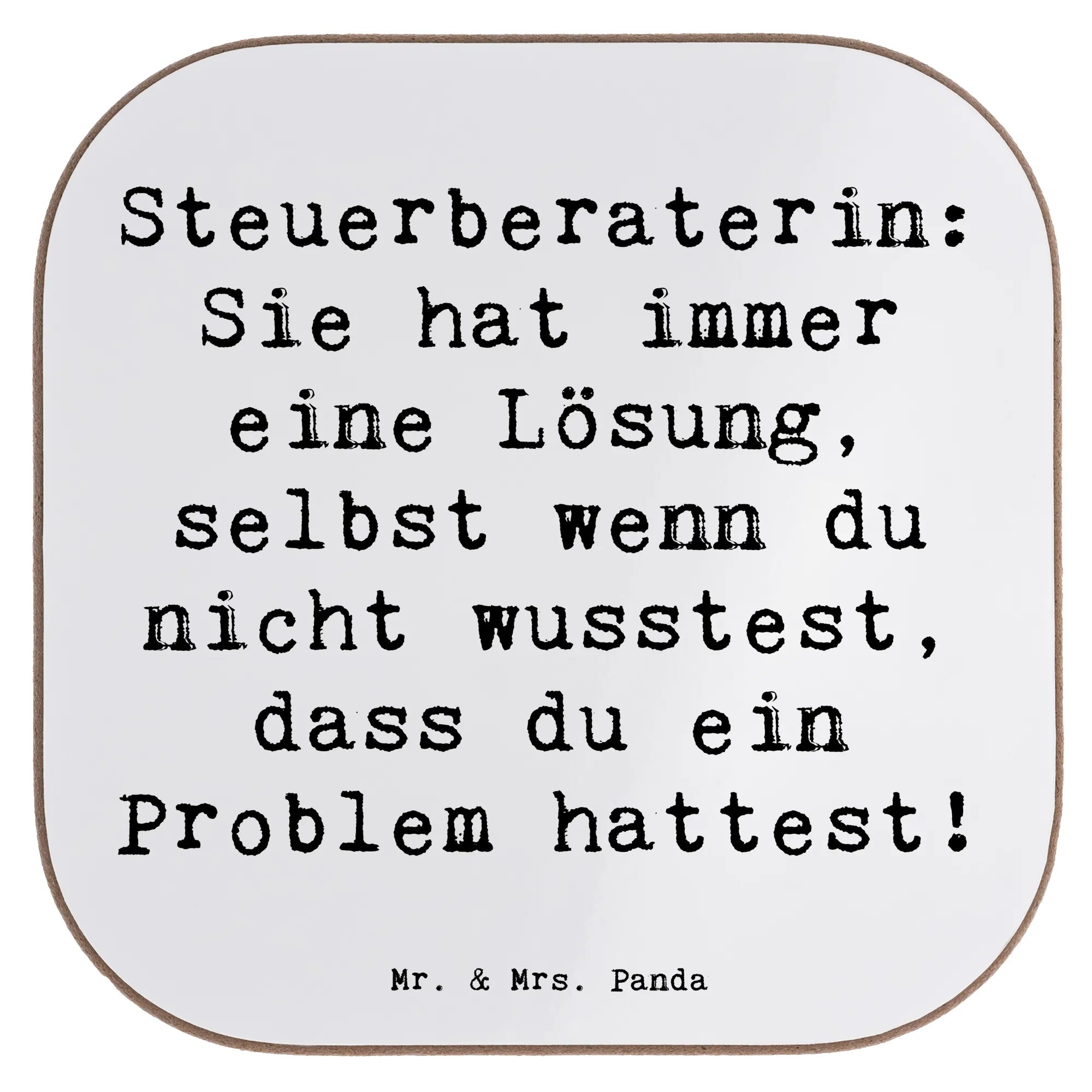 Ein hübscher Untersetzer für Steuerberaterin 😊 – Teil der liebevollen Berufe-Kollektion von Mr. & Mrs. Panda. Dieser quadratische Glasuntersetzer trägt den frechen Spruch: "Steuerberaterin: Sie hat immer eine Lösung, selbst wenn du nicht wusstest, dass du ein Problem hattest!" und sorgt für gute Laune auf jedem Schreibtisch oder Couchtisch.
