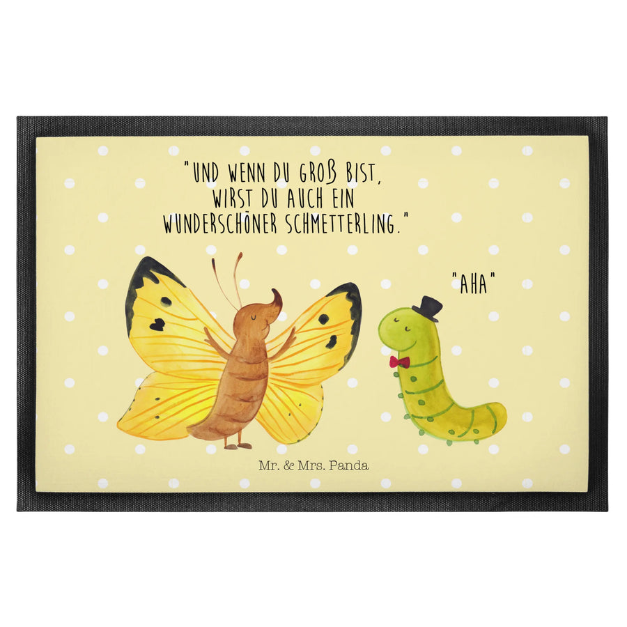 wycieraczka gąsienica motyl - 60 x 90 cm - z napisem - Pastelowy żółty