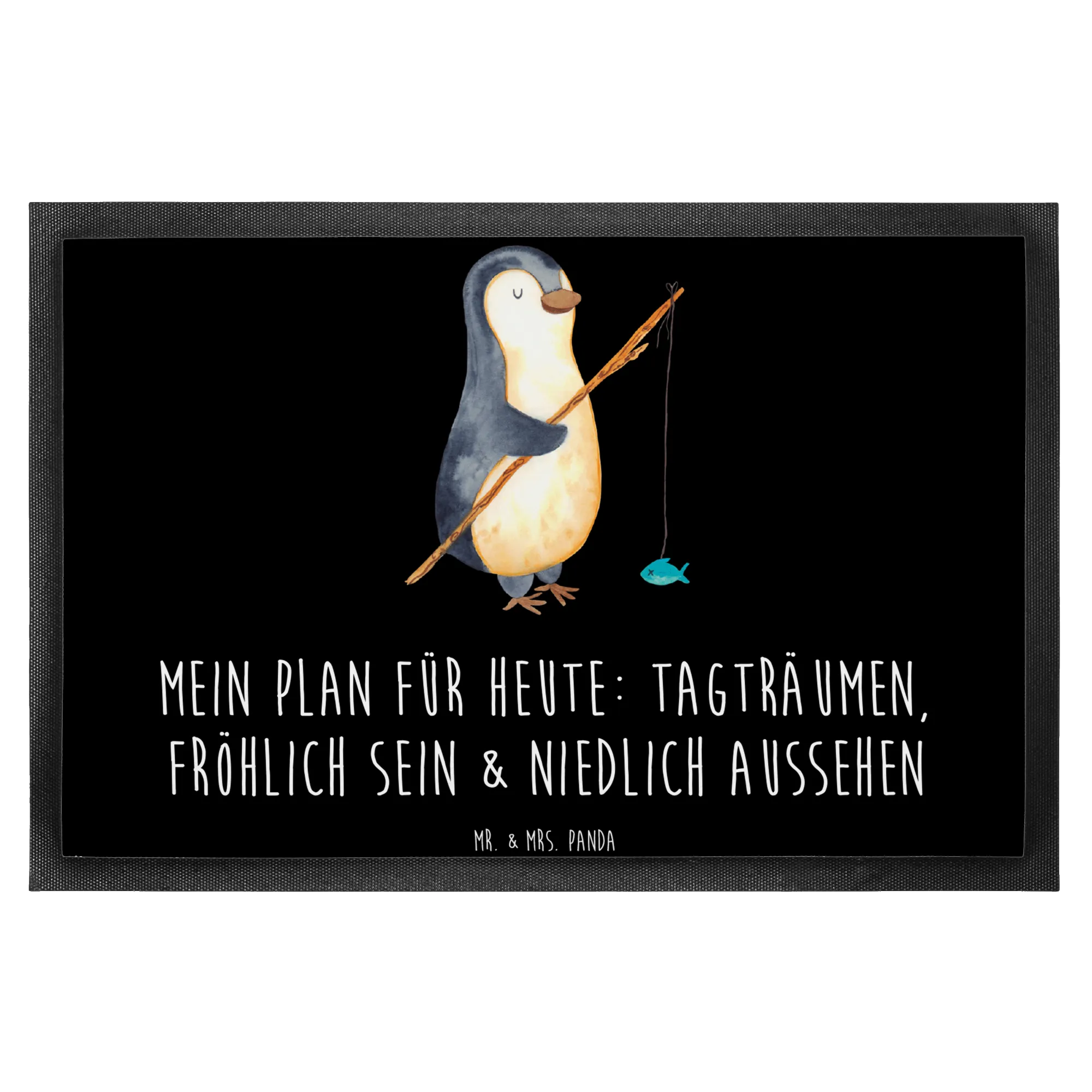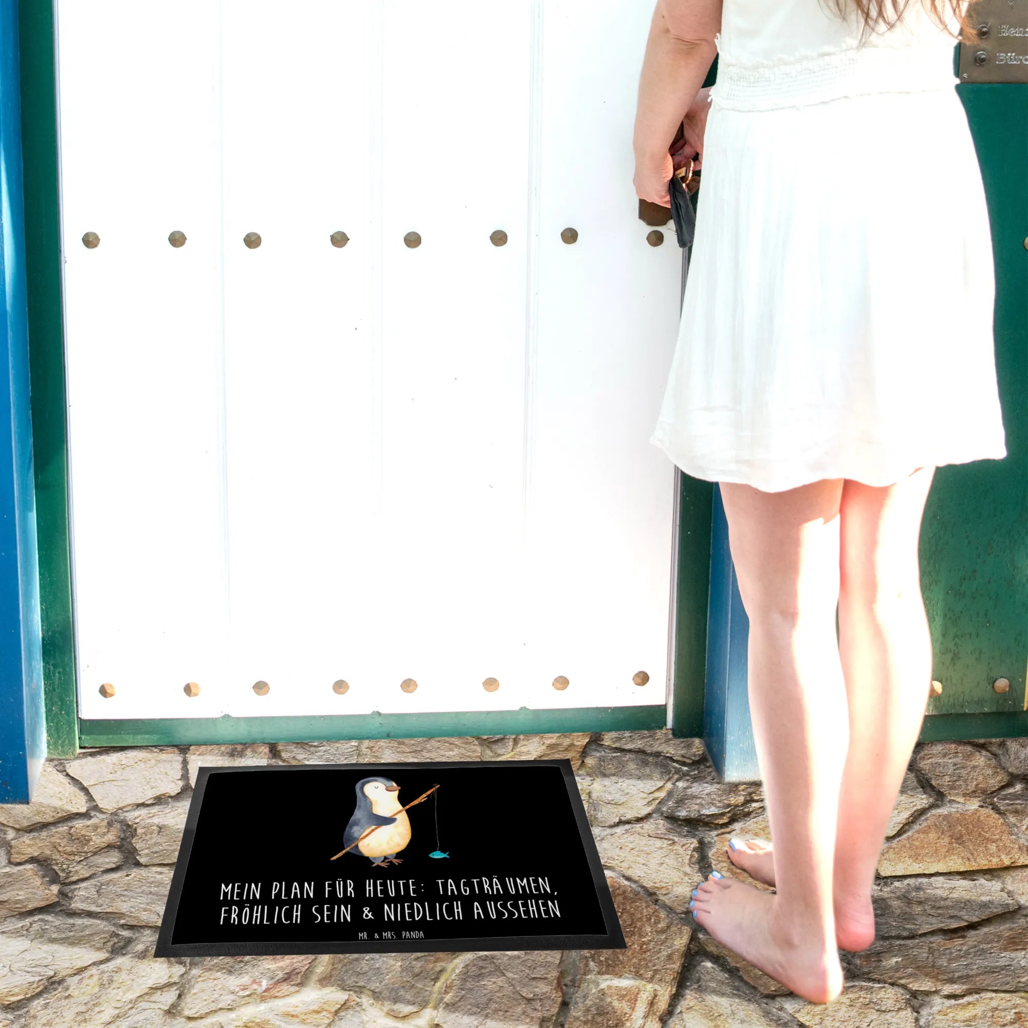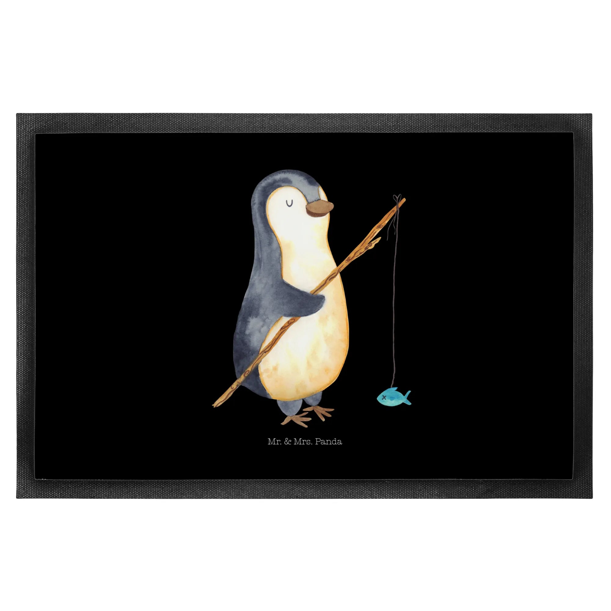 wycieraczka Pingwin Wędkarz - 50 x 75 cm - z napisem - Czarny