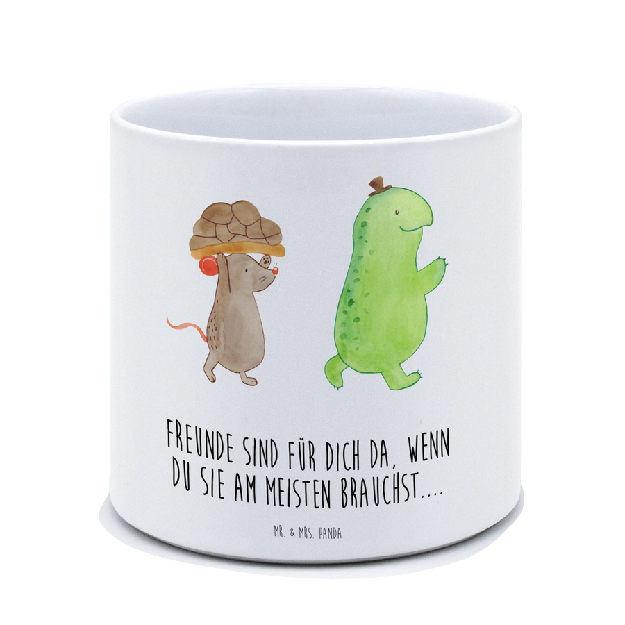 Das Design zeigt die Schildkröte, die ihrem kleinen Freund, der Maus, hilft, ihren Panzer zu tragen. Eine wunderbare Erinnerung daran, dass wahre Freunde immer füreinander da sind. Mit dem Spruch 'Freunde sind für dich da, wenn du sie am meisten brauchst...' wird jeder Blick auf diesen Topf zu einer kleinen Aufforderung an die Freundschaft in unserem Leben.