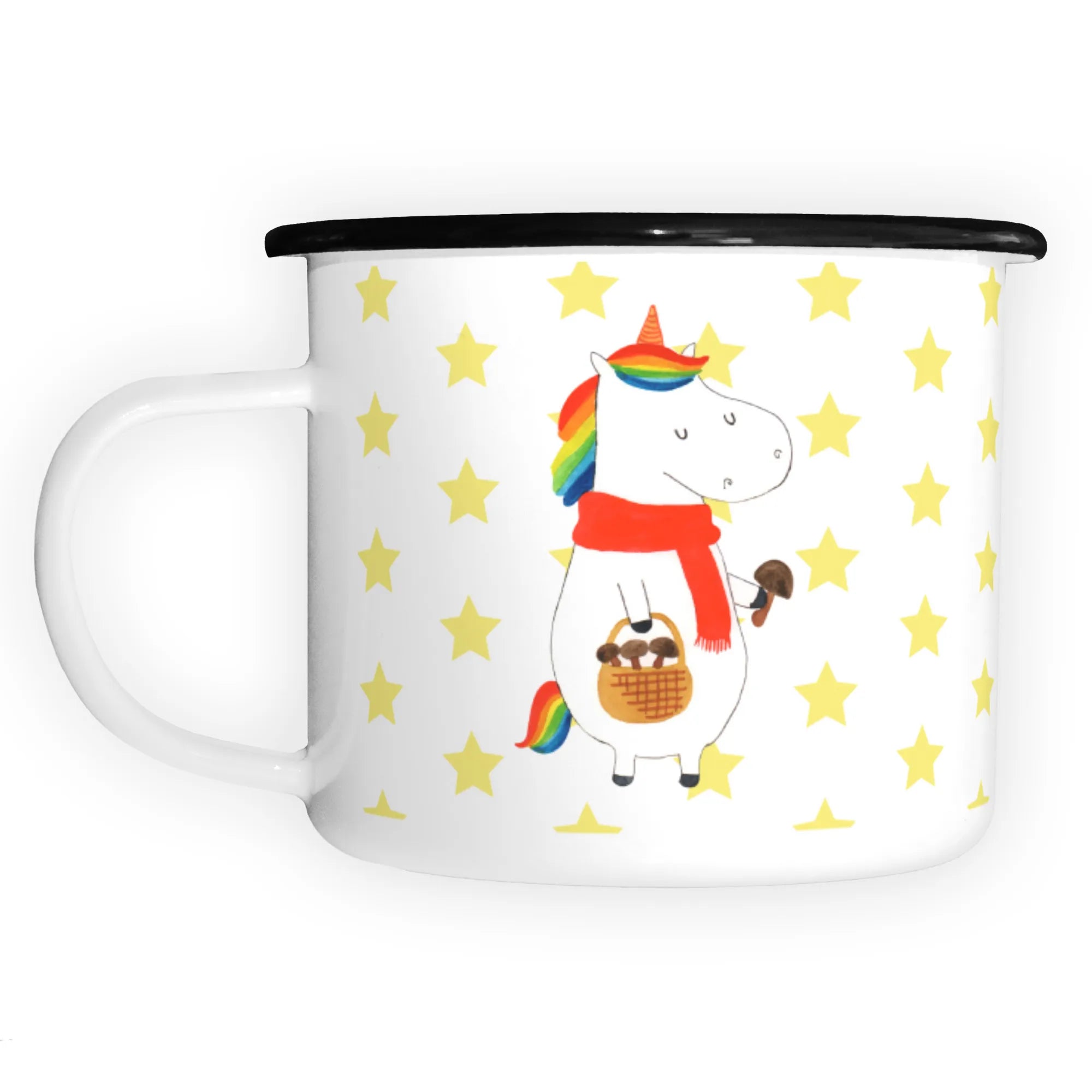 XL emaliowany kubek Jednorożec grzyb - z napisem
