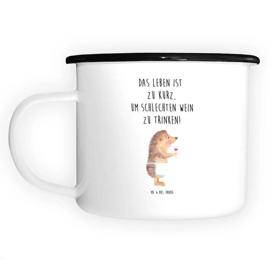 XL emaliowany kubek jeż wino - z napisem - biały