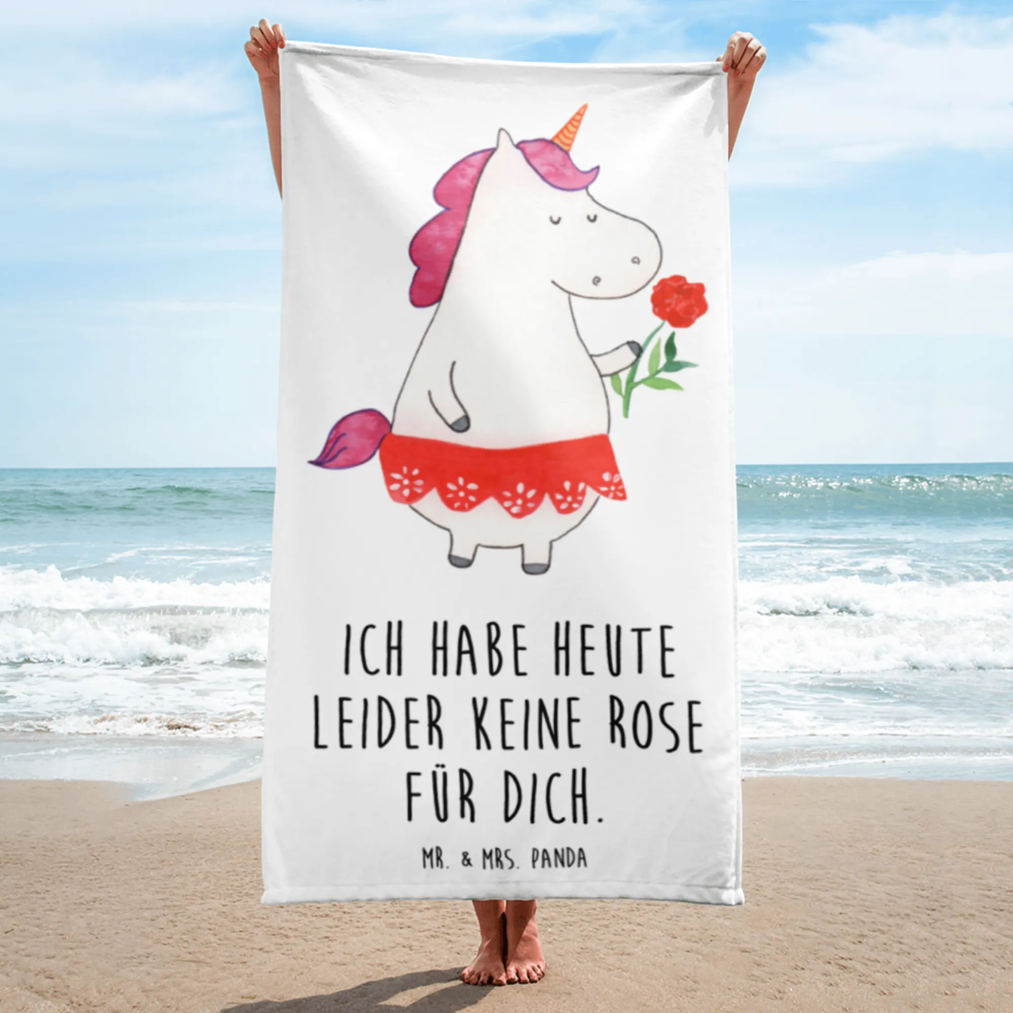 Besonders wenn die Mädels einen Sommertag am Strand oder eine spaßige Bachelorette-Party planen, sorgt das Einhorn Dame Handtuch für zusätzliche Freude. Der liebenswerte Spruch „Ich habe heute leider keine Rose für dich“ bringt die Stimmung auf den Punkt und ergänzt den charmanten Look des Handtuchs perfekt.