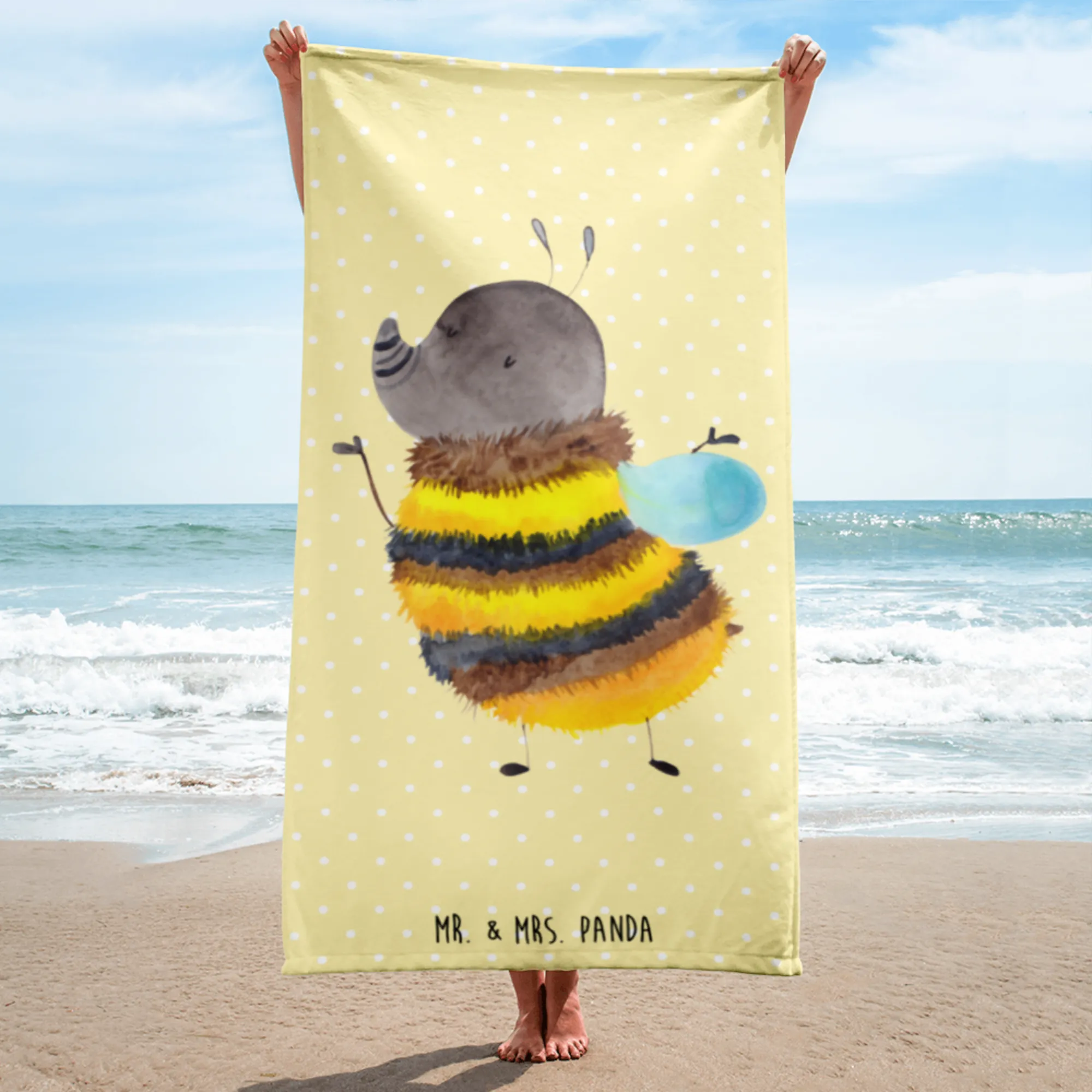 XL ręcznik kąpielowy trzmiel puszysty - z napisem - Żółty Pastel