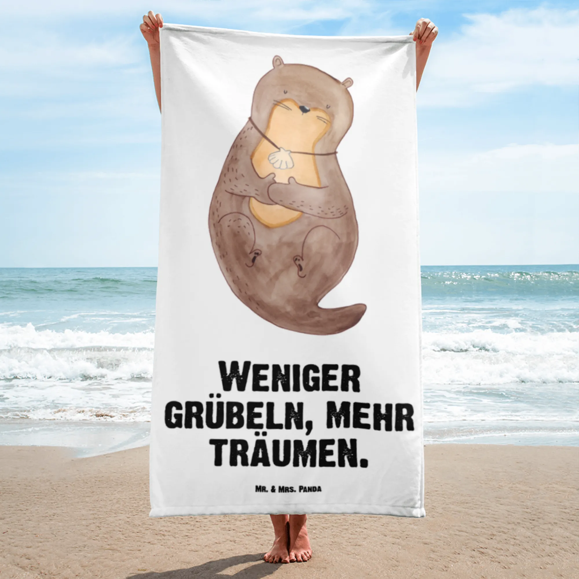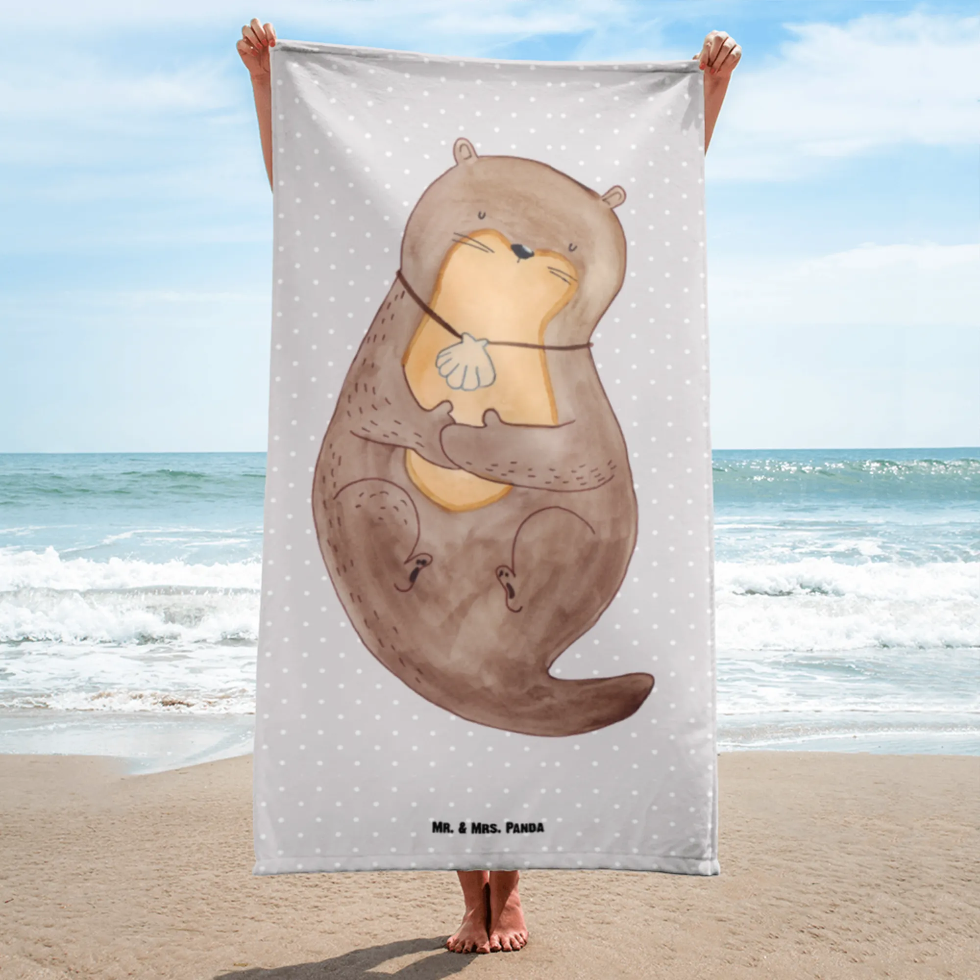 XL ręcznik kąpielowy wydra muszla - z napisem - Pastelowy szary
