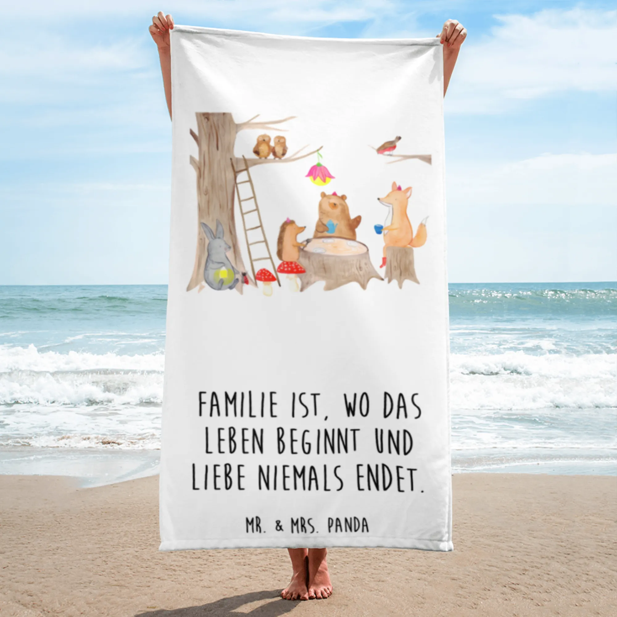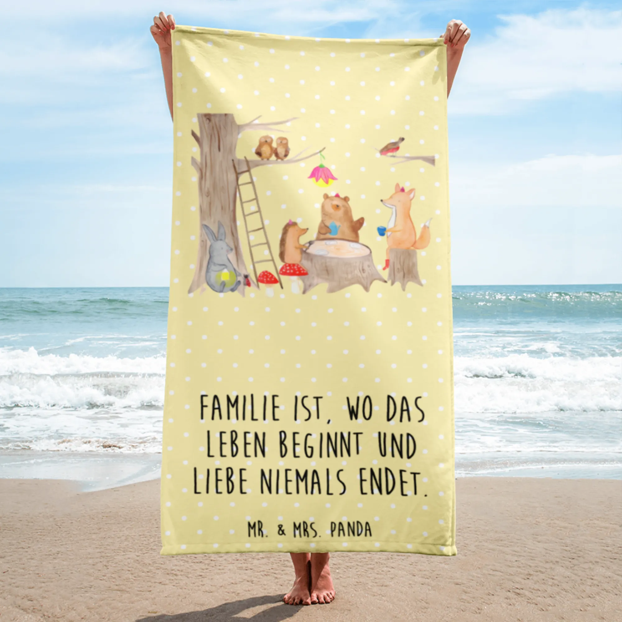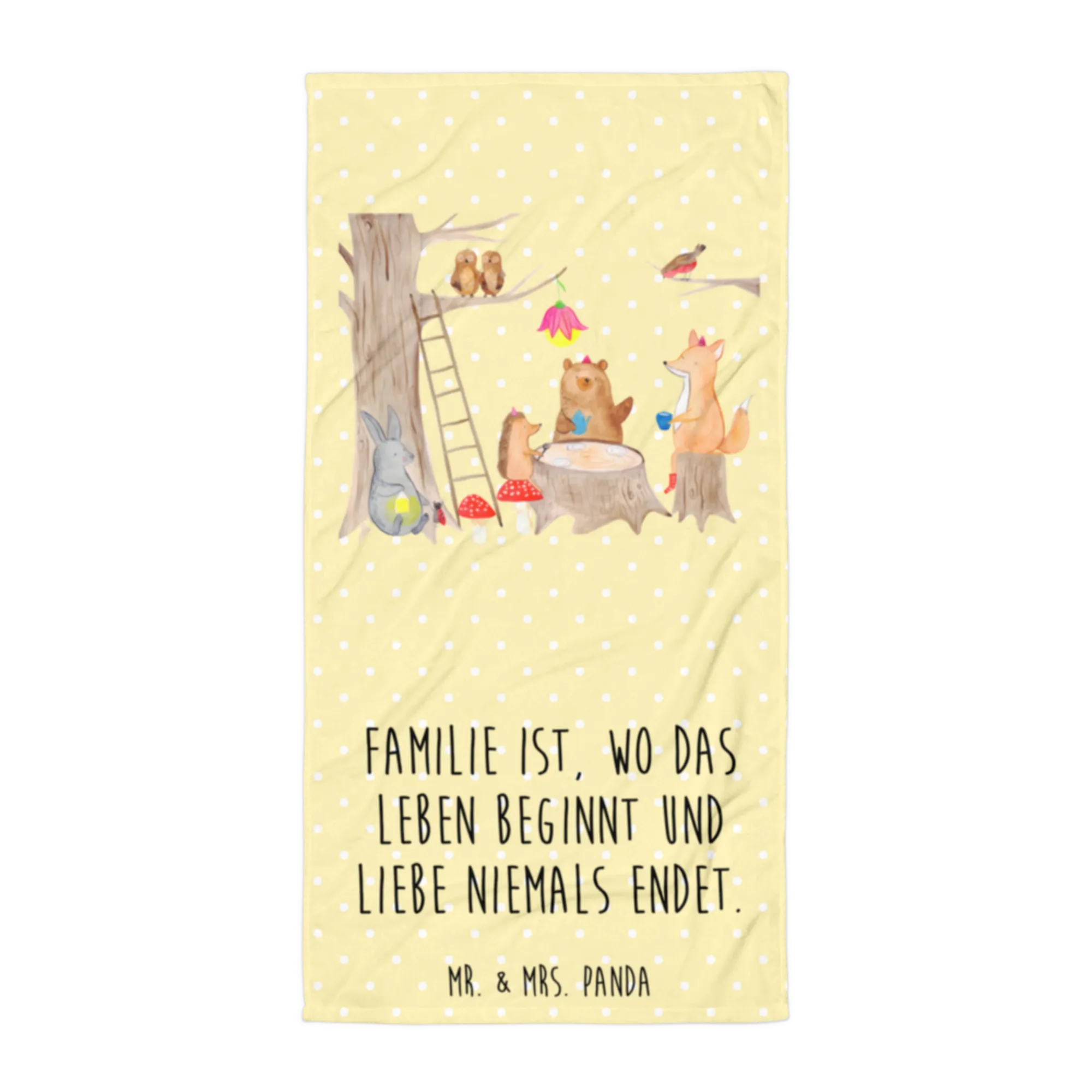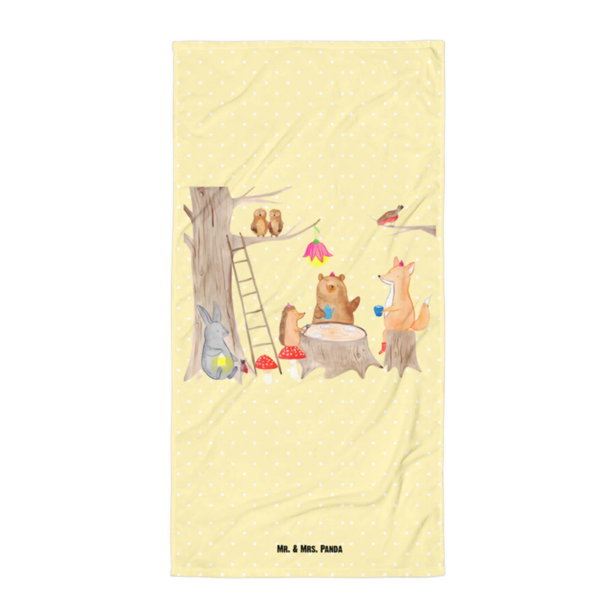 XL ręcznik kąpielowy zwierzęta leśne piknik - z napisem - Pastelowy żółty