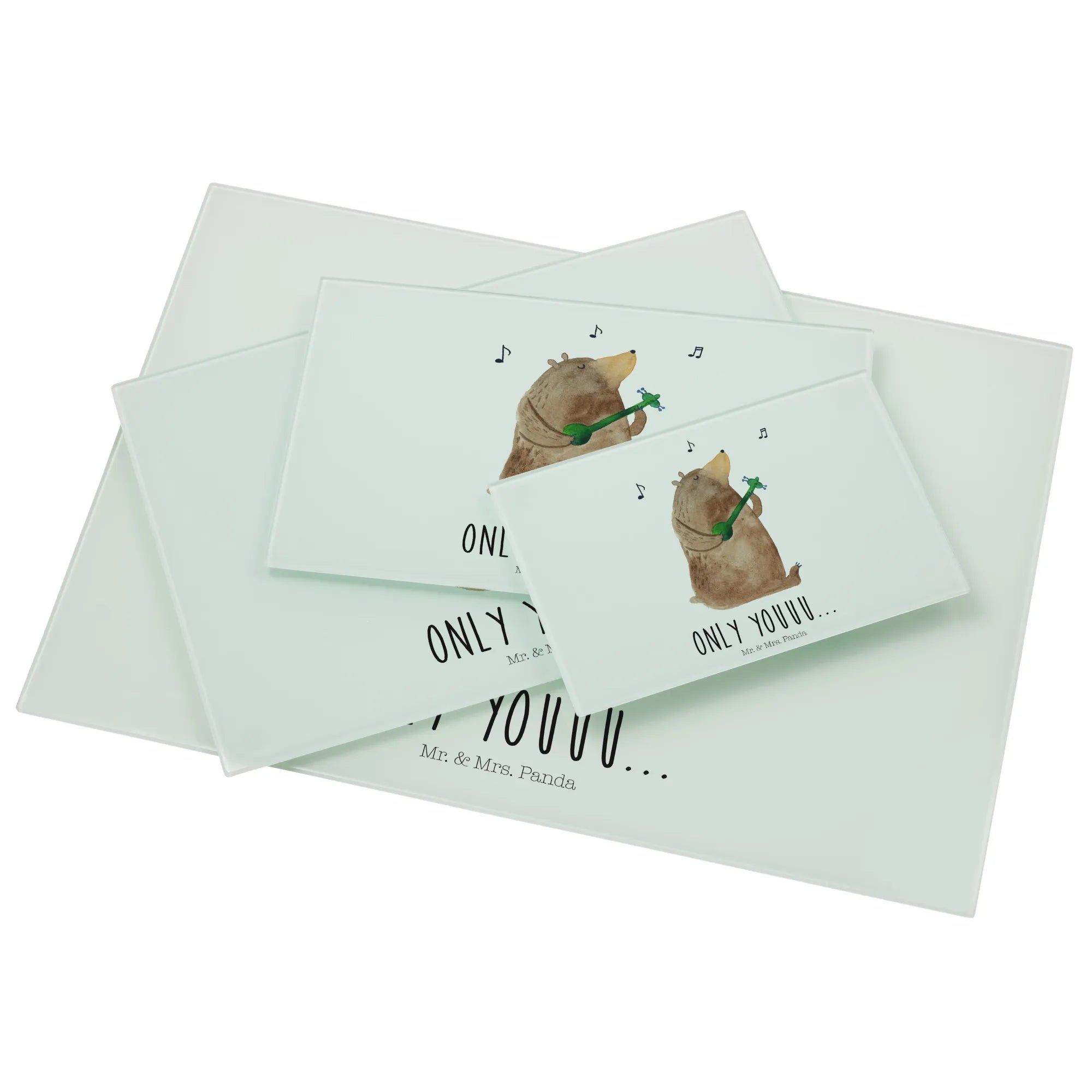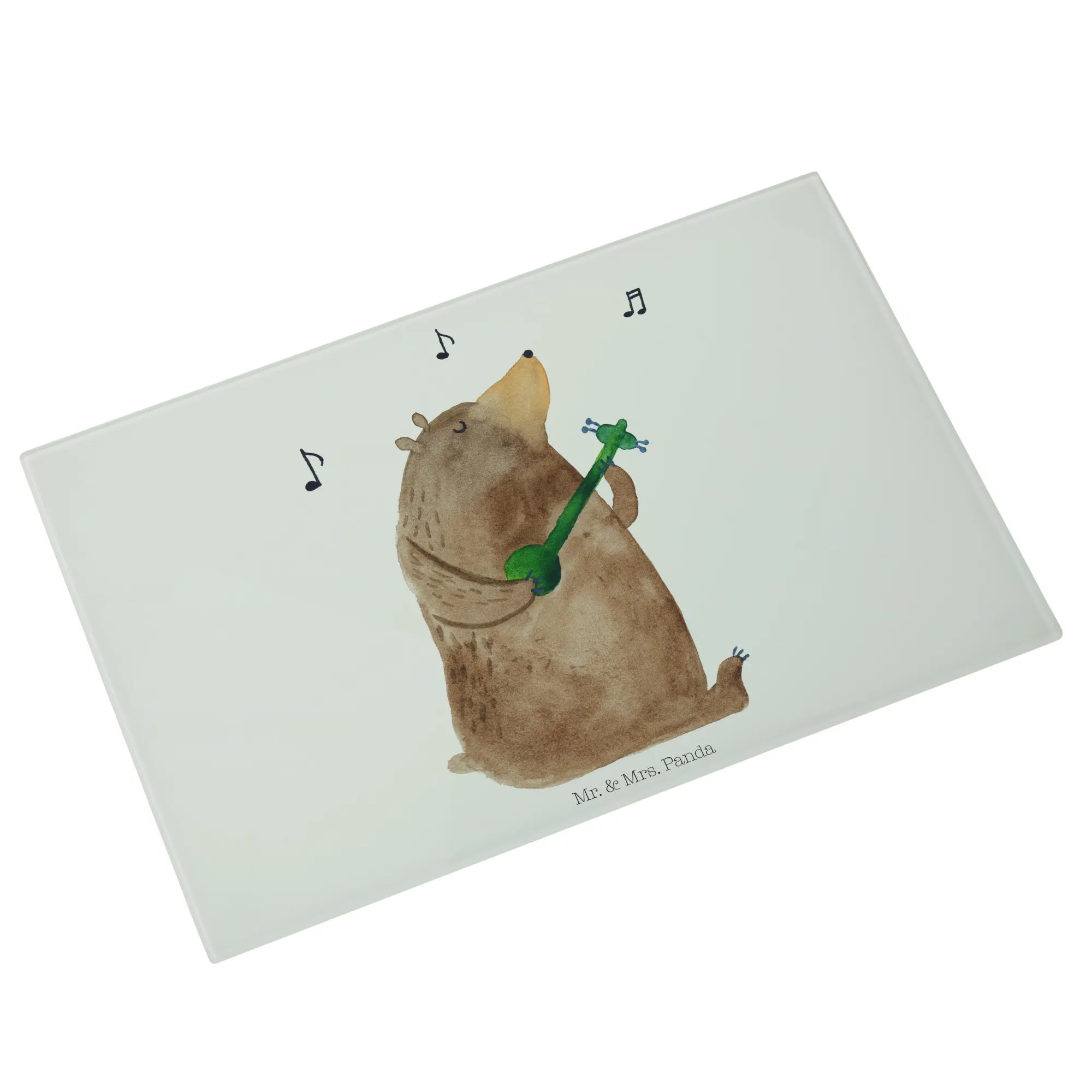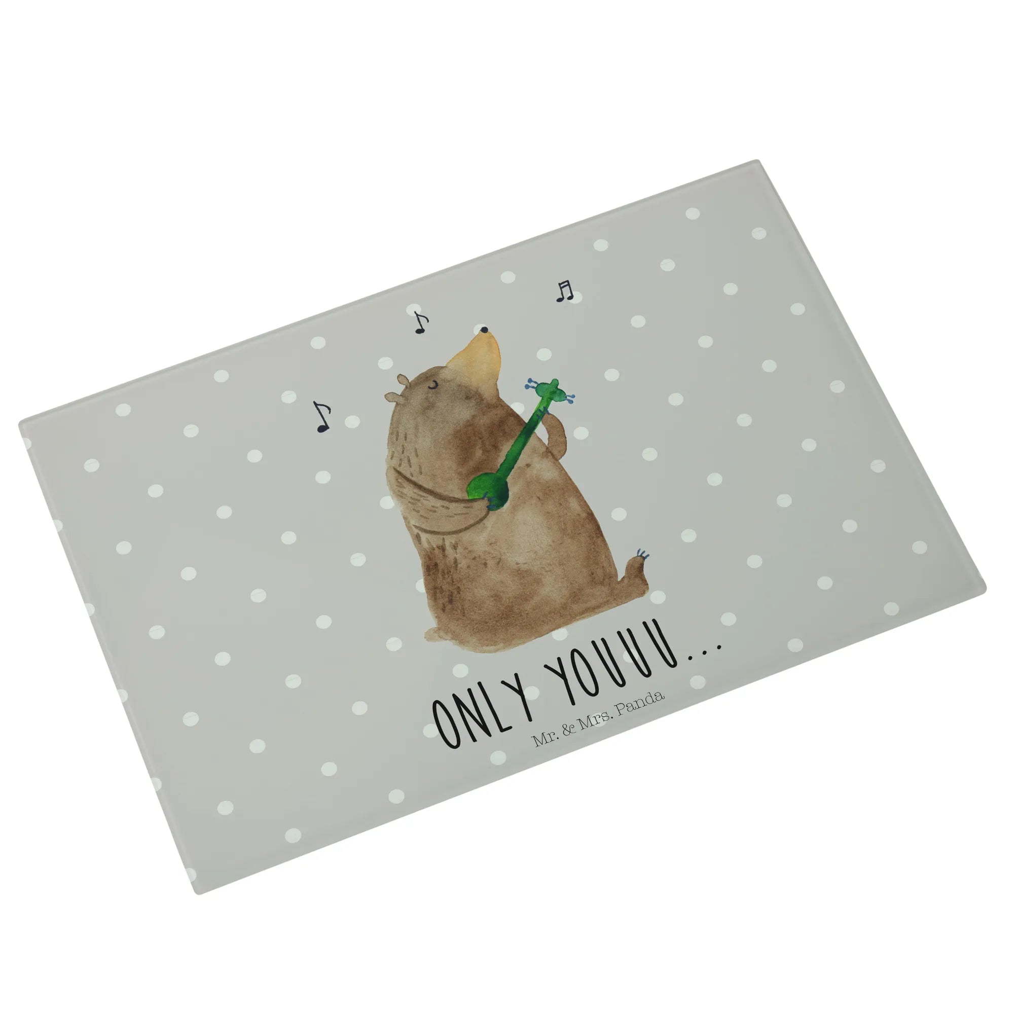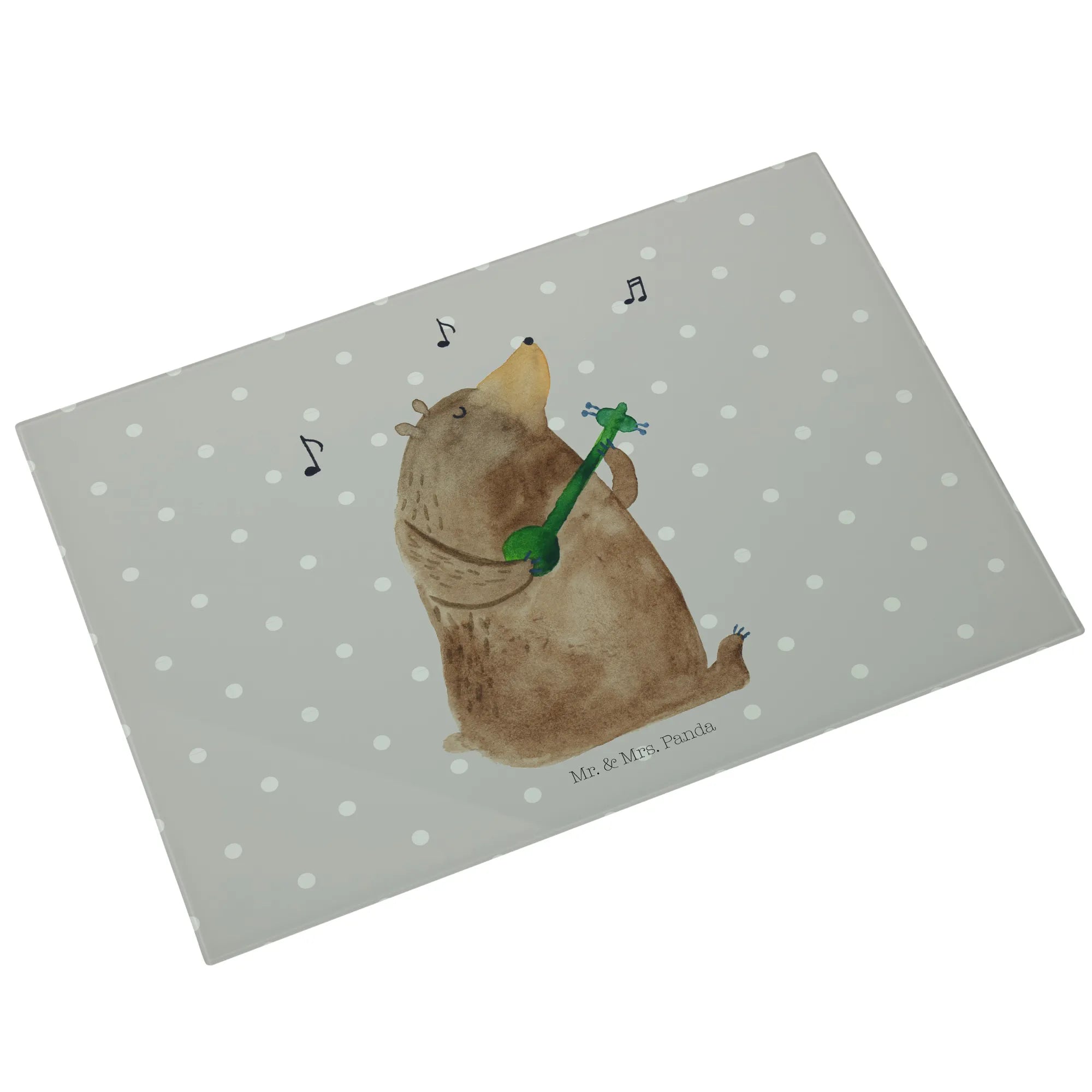 XL Szklana Deska do Krojenia niedźwiedź Gitara - Średnia szklana deska do krojenia - z napisem - Szary Pastel