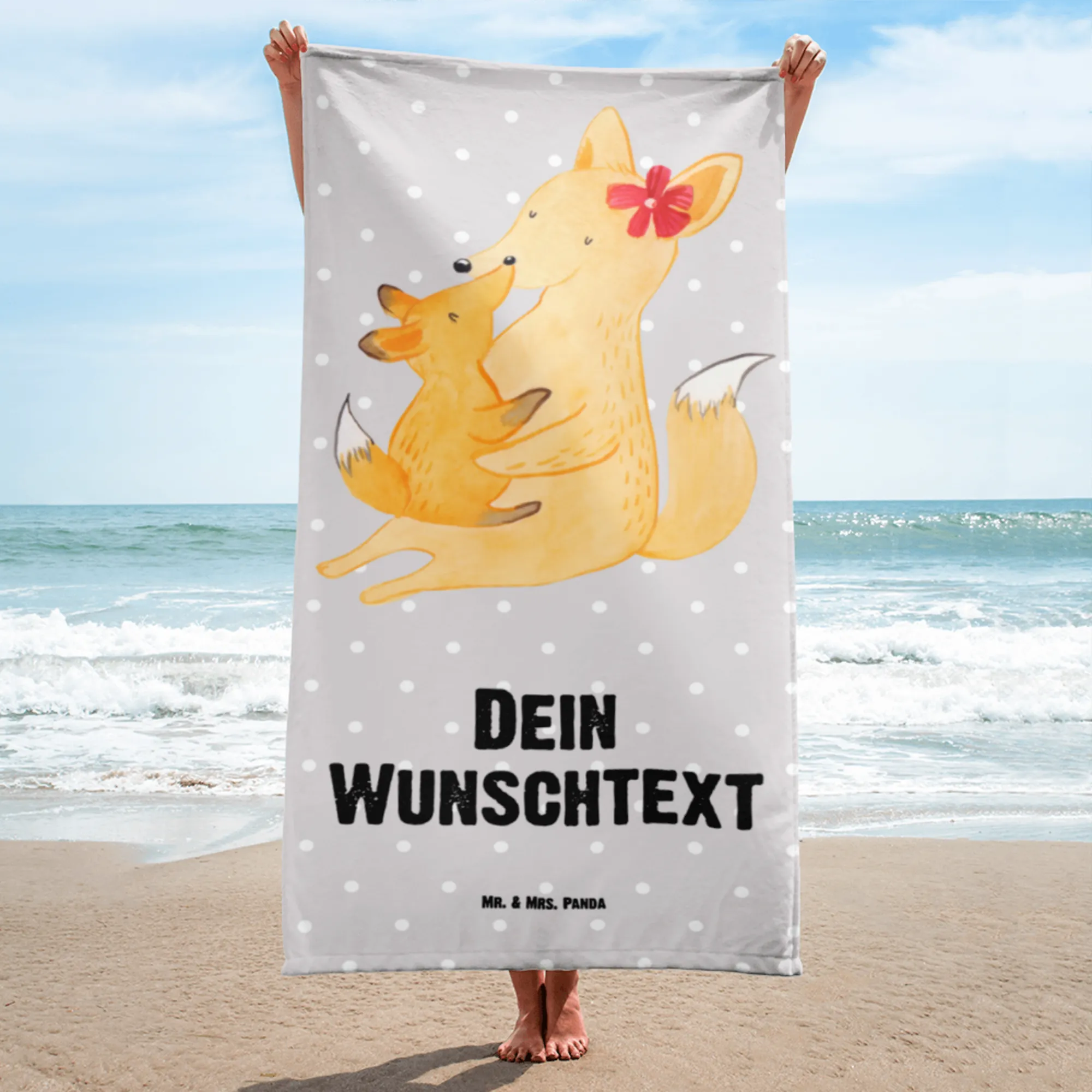 XXL ręcznik kąpielowy z imieniem Lis Mama - Pastelowy niebieski