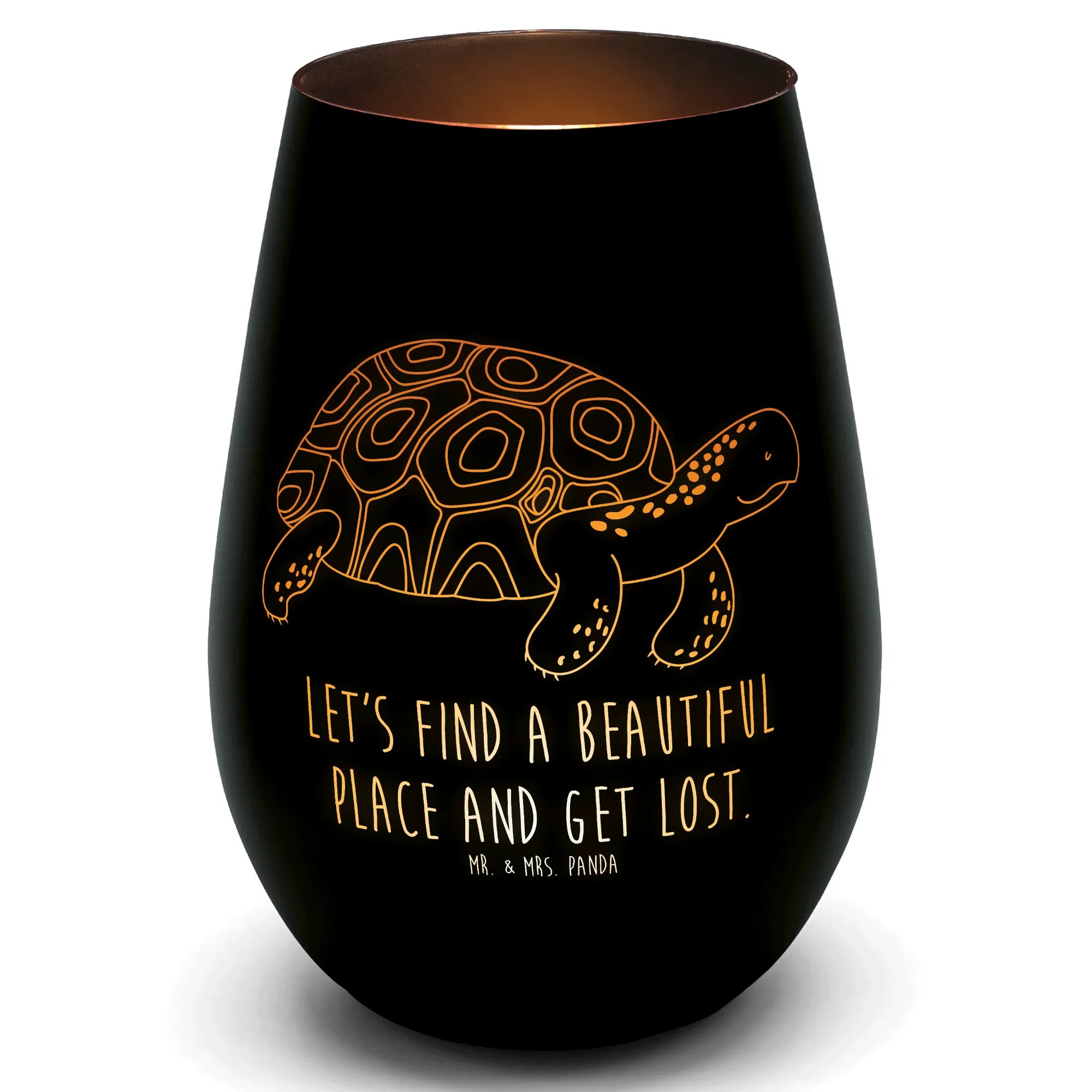 Entdecke das edle Gold Windlicht mit dem perfekten Motiv der marschierenden Schildkröte aus der bezaubernden Meerestiere Kollektion von Mr. & Mrs. Panda. Mit seinem einladenden Slogan 'Let's find a beautiful place and get lost.' inspiriert dieses Windlicht zu kleinen Abenteuern und unvergesslichen Momenten.