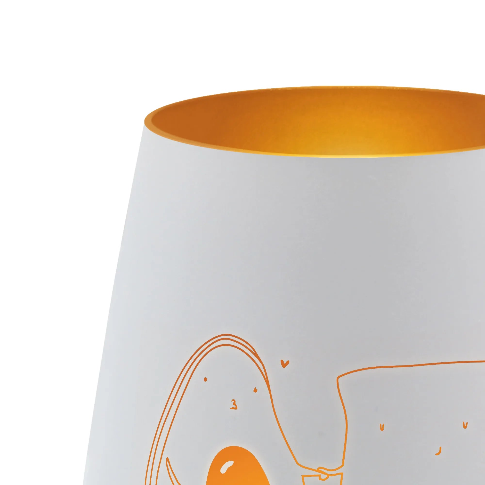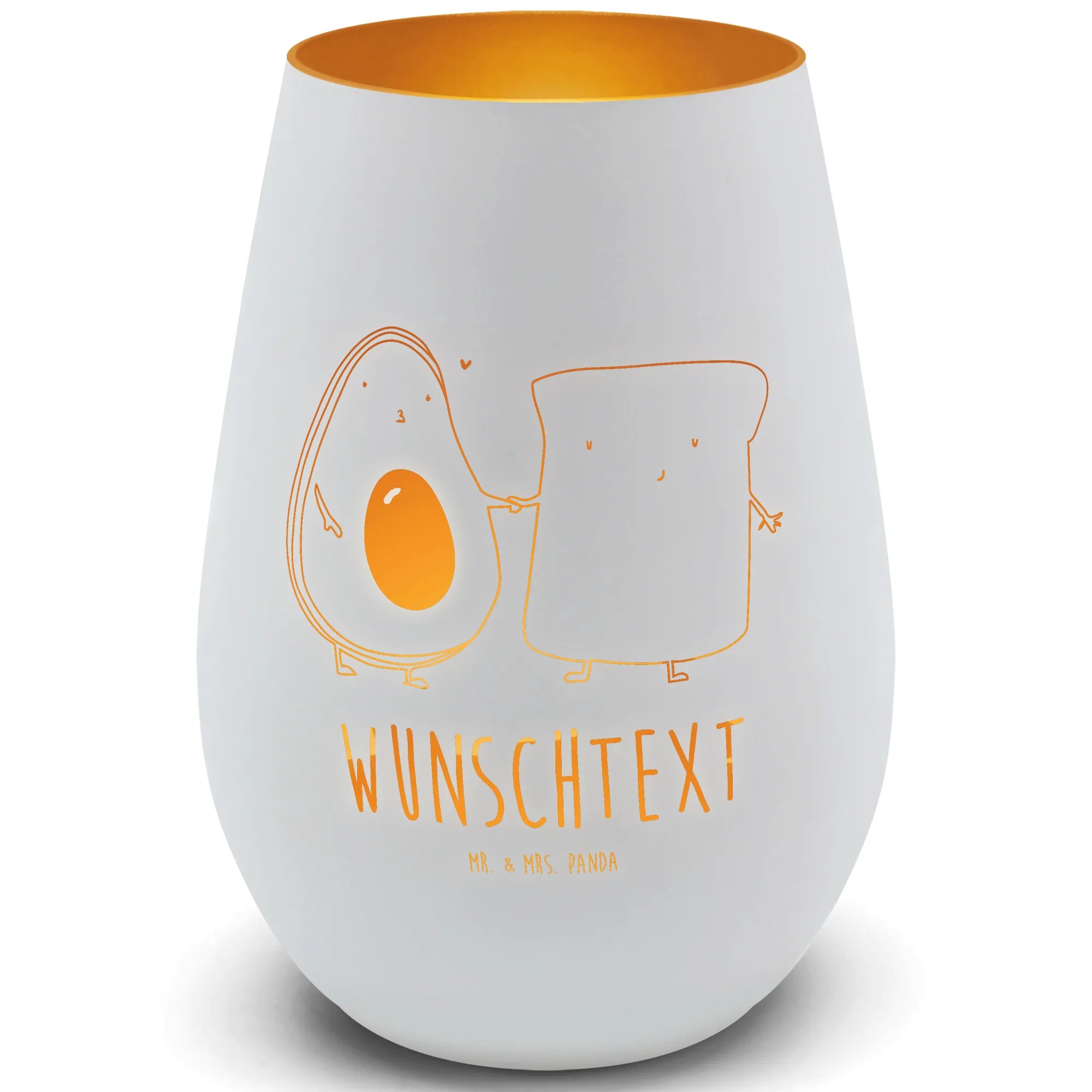 Das personalisierte Gold Windlicht mit dem süßen Motiv Avocado + Toast von Mr. & Mrs. Panda ist ein wunderbares Geschenk für all diejenigen, die das Besondere lieben. Ob für Verlobte, frisch Verliebte oder als einzigartiges Hochzeitsgeschenk, dieses Windlicht bringt eine wohlige und romantische Stimmung in jedes Zuhause. Die niedliche Avocado und der verliebte Toast, die sich an den Händen halten, verkörpern die perfekte Harmonie zwischen zwei Herzen und inspirieren Tag für Tag dazu, die kleinen Glücksmomente des Lebens bewusst zu genießen.