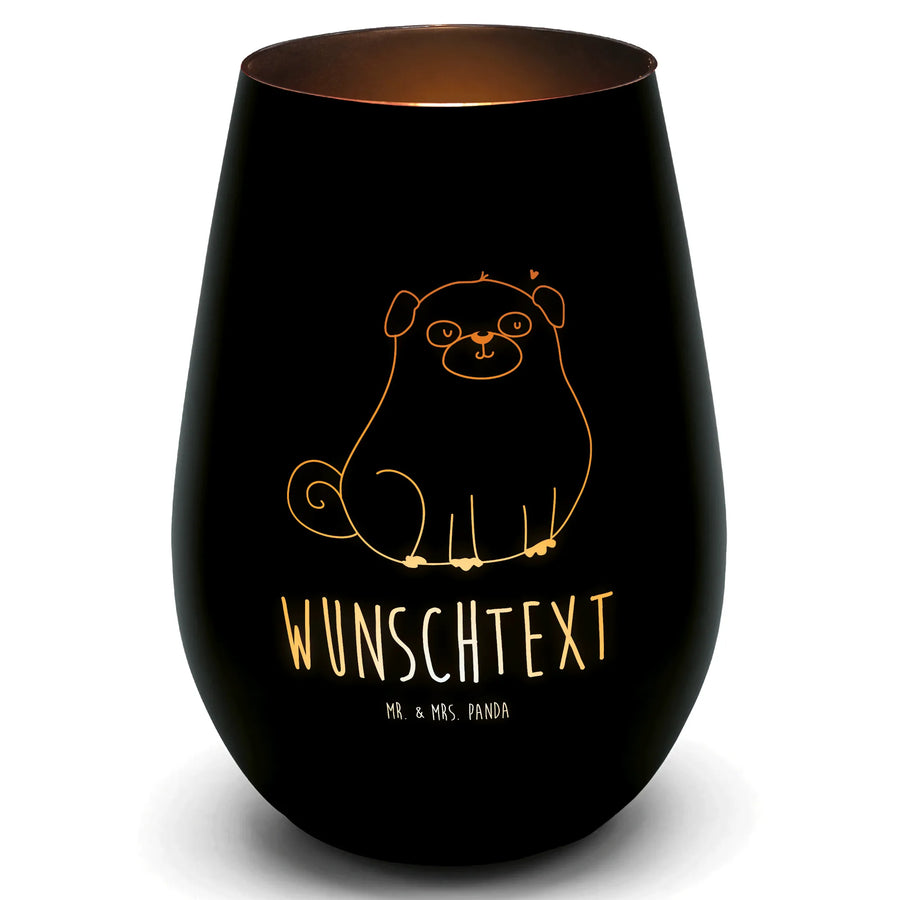 Das Gold Windlicht Personalisiert mit einem niedlichen Mops-Motiv von Mr. & Mrs. Panda ist die perfekte Geschenkidee für jeden Hundeliebhaber. Dieses edle Windlicht aus hochwertigem Glas ist nicht nur ein echter Hingucker, sondern bringt auch eine zauberhafte Atmosphäre in jedes Zuhause. Das Windlicht hat eine Höhe von 120 mm und einen Durchmesser von 85 mm und eignet sich ideal für handelsübliche Teelichter. Egal ob für einen romantischen Abend zu zweit oder für festliche Sommernächte, dieses Windlicht sorgt für eine gemütliche Stimmung.