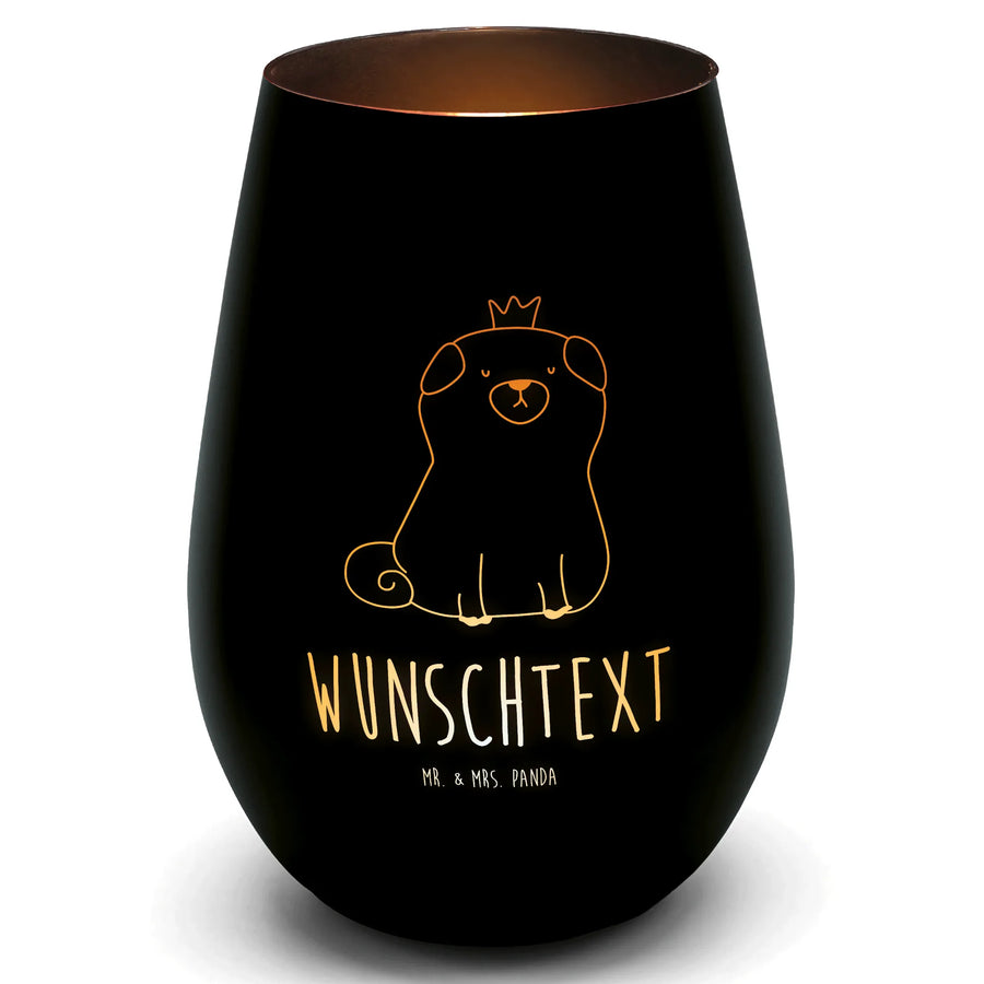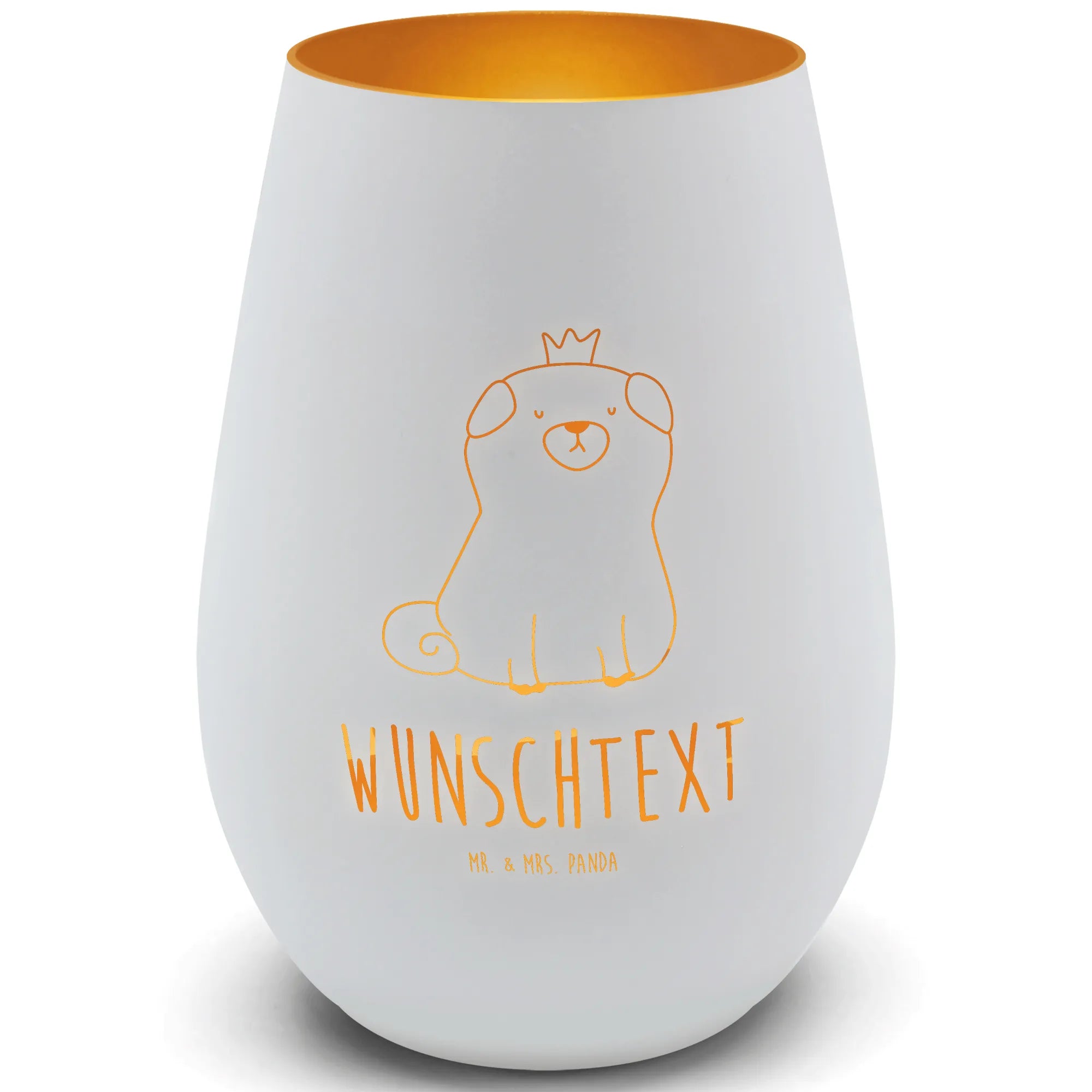Das personalisierte Gold Windlicht Mops Krone von Mr. & Mrs. Panda ist das perfekte Geschenk für alle Hundeliebhaber und Tierfreunde. Es kombiniert stilvolles Design mit einer humorvollen Botschaft: "In unserem Haus gibt es keine Kinder. Der Hund war allergisch." Dieses wunderschöne Windlicht wird aus hochwertigem Glas gefertigt und sorgt für eine gemütliche, romantische Stimmung. Durch die personalisierbare Gravur mit deinem Wunschnamen schaffst du ein individuelles Geschenk, das von Herzen kommt.