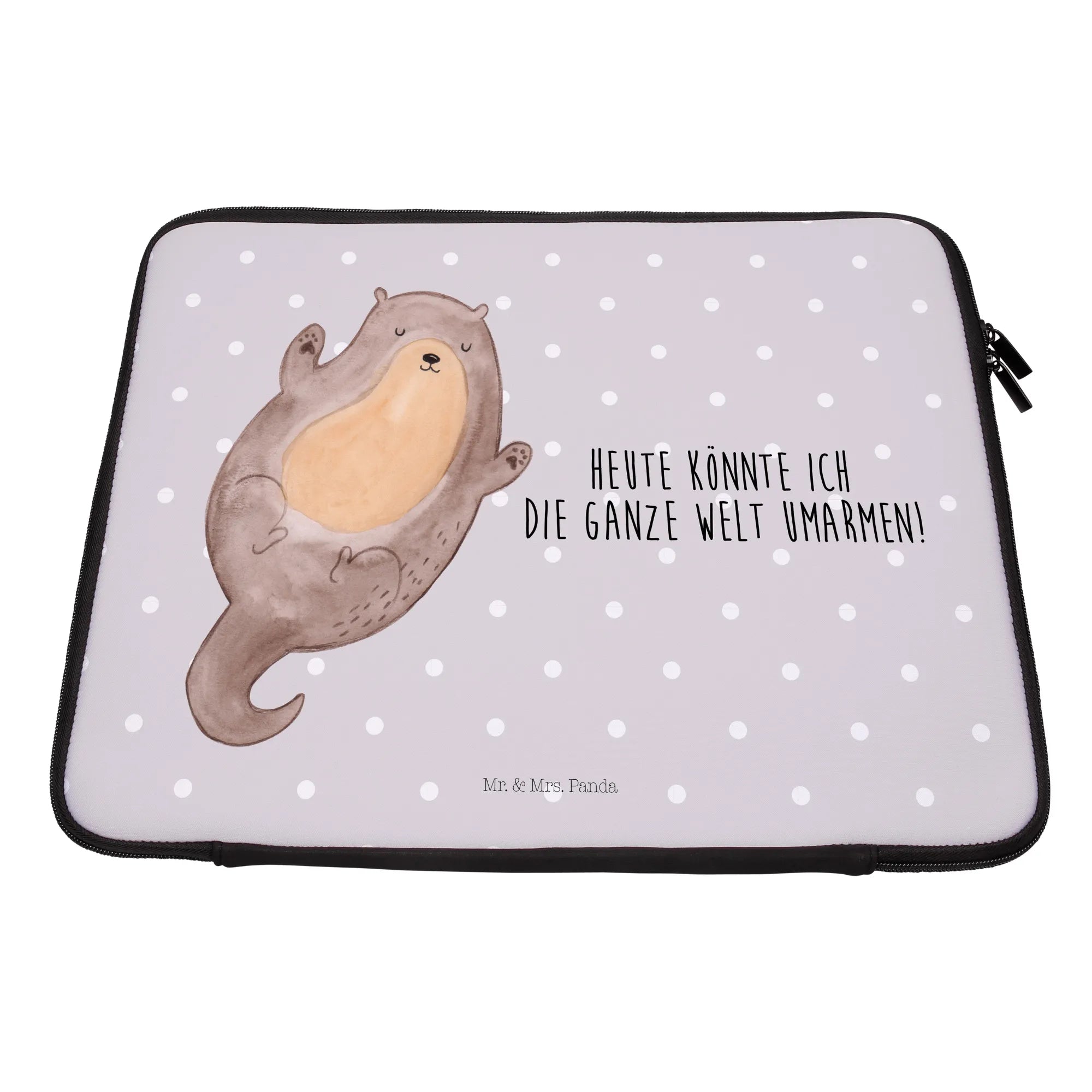 Entdecke die bezaubernde Notebook Tasche im Otter Umarmen Design von Mr. & Mrs. Panda! Diese leichte und wunderschöne Tasche ist perfekt für alle, die ihren Laptop oder Notebook stilvoll und sicher transportieren möchten. Hochwertig bedruckt mit dem süßen Motiv eines niedlichen Otters, der seine Arme ausbreitet und sagt: "Heute könnte ich die ganze Welt umarmen!" ist sie ein echter Hingucker.