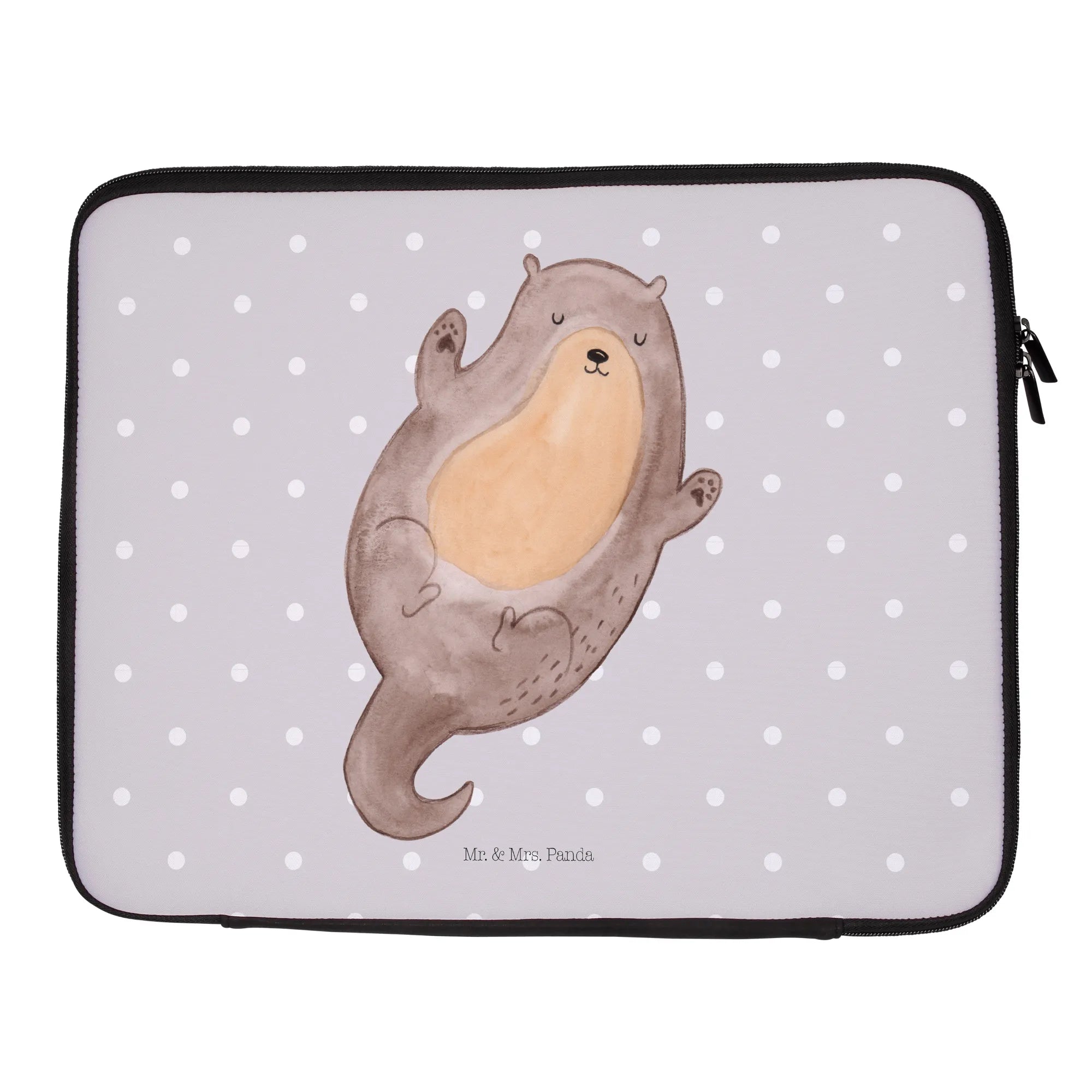 Die süße Notebook Tasche mit dem Motiv "Otter Umarmen" aus der Otter-Kollektion von Mr. & Mrs. Panda ist der perfekte Begleiter für alle, die stilvoll und gleichzeitig praktisch unterwegs sein möchten. Mit ihrem liebevoll gestalteten Design zeigt sie einen niedlichen Otter, der fröhlich auf dem Rücken schwimmt und die Arme ausbreitet, um das Leben zu umarmen. Diese Tasche ist nicht nur ein Hingucker, sondern auch äußerst funktional.