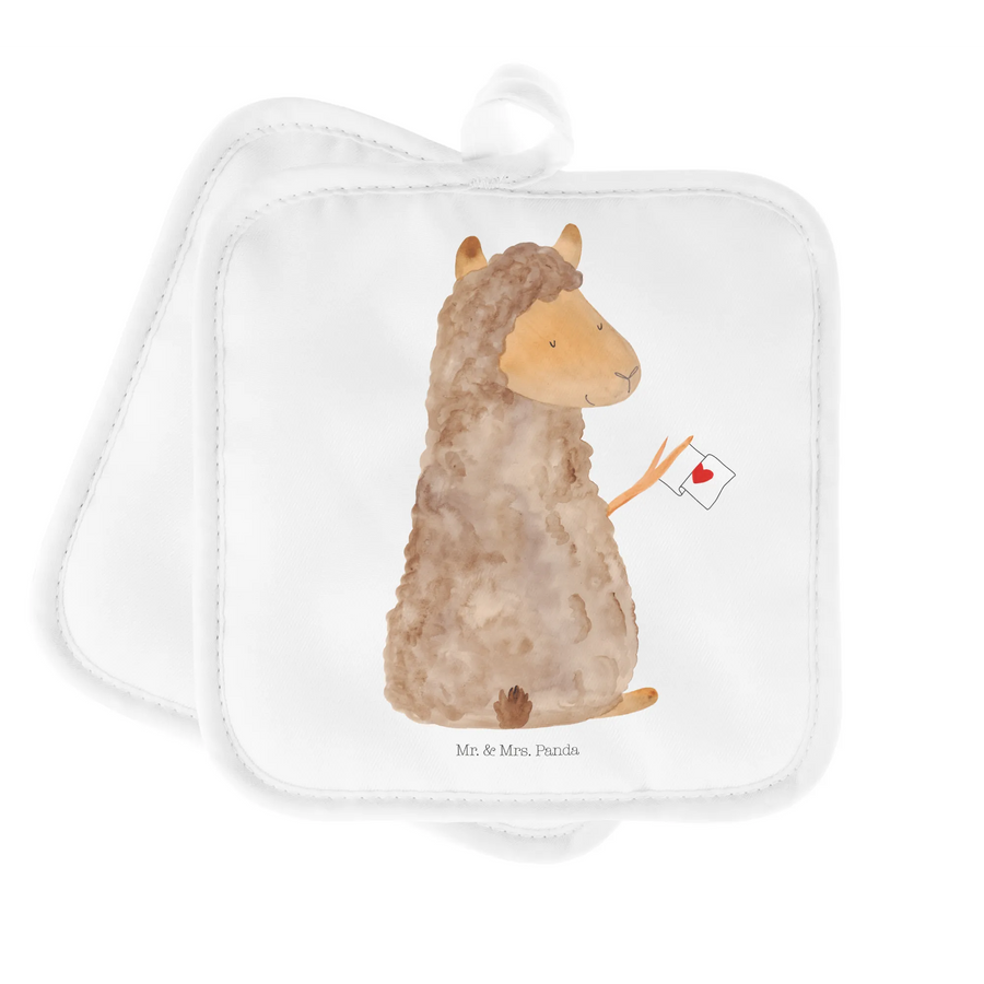 Die Mr. & Mrs. Panda Topflappen im 2er Set mit dem lustigen Alpaka Fahne Motiv sind das perfekte Geschenk für jeden Koch und Backliebhaber!