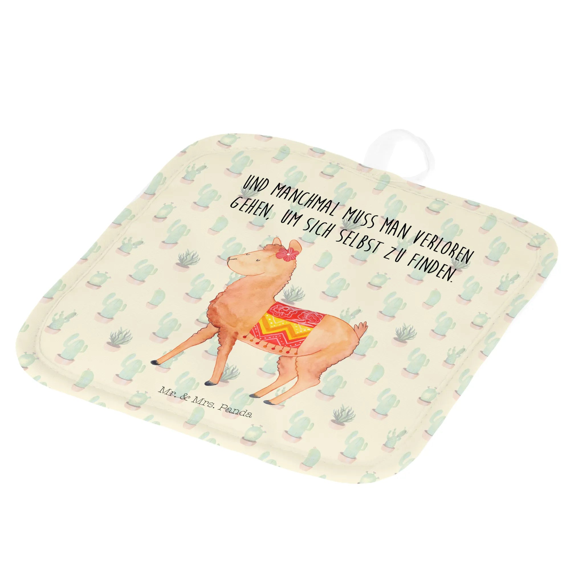 topfhalter Alpaka Stolz - mit Spruch - Weiß