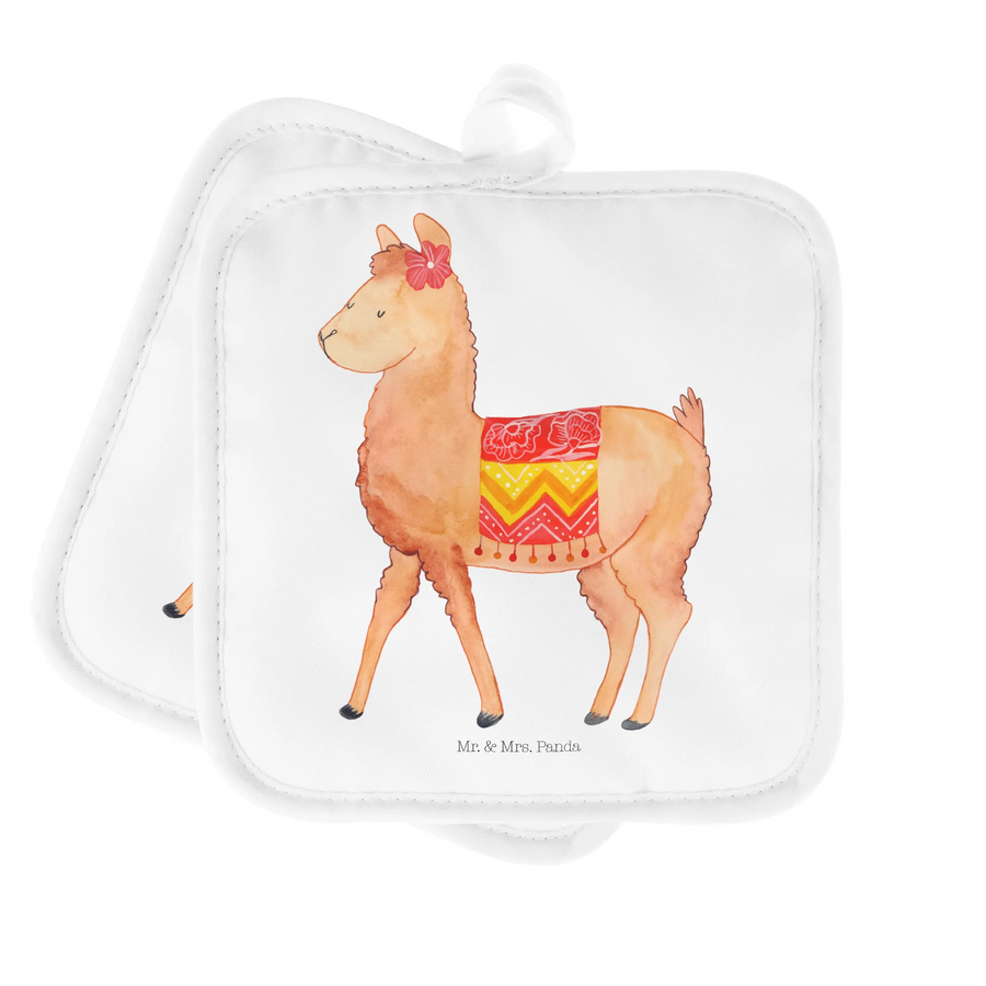 2er Set Topflappen Alpaka Stolz - ohne Spruch - Weiß