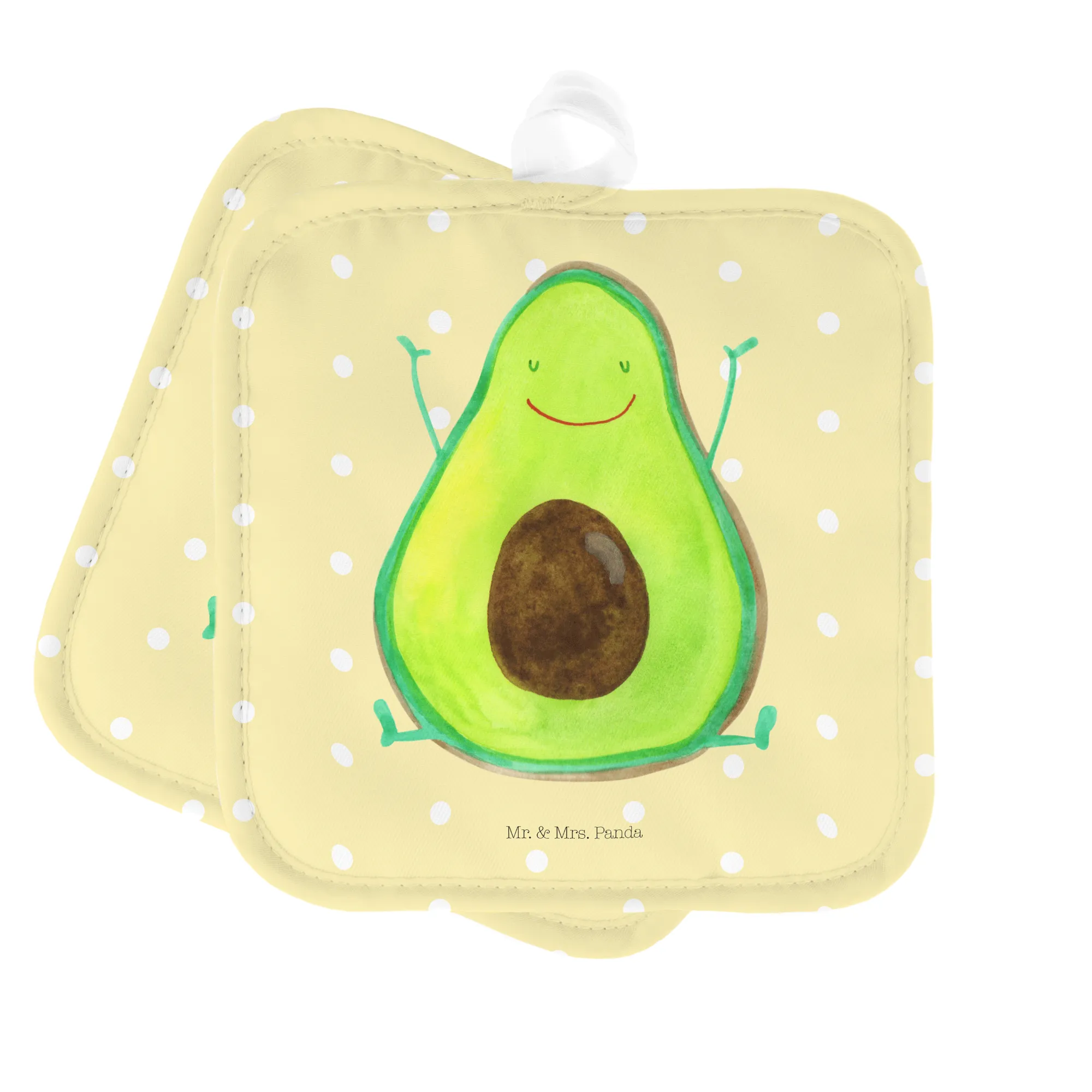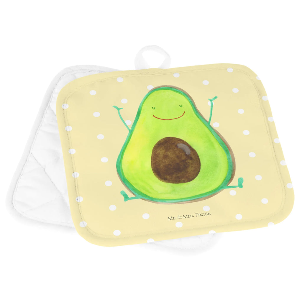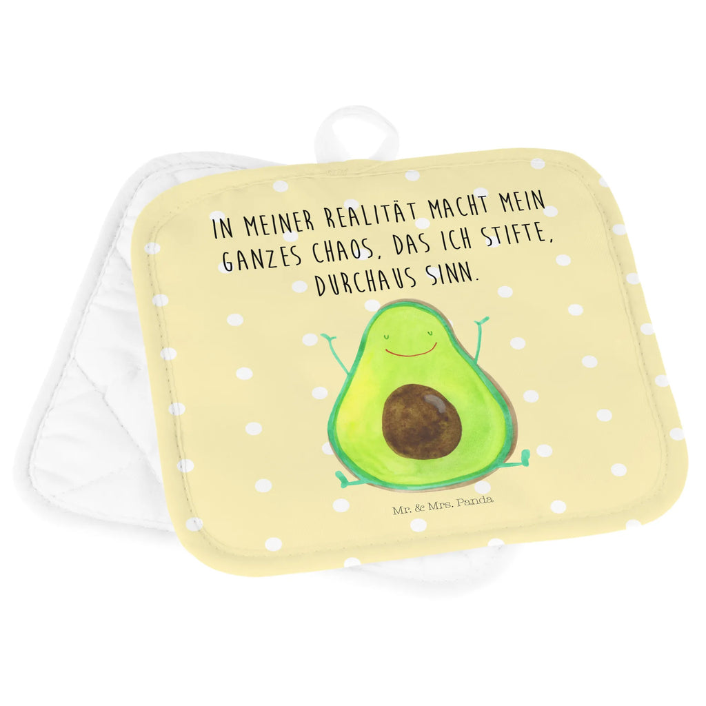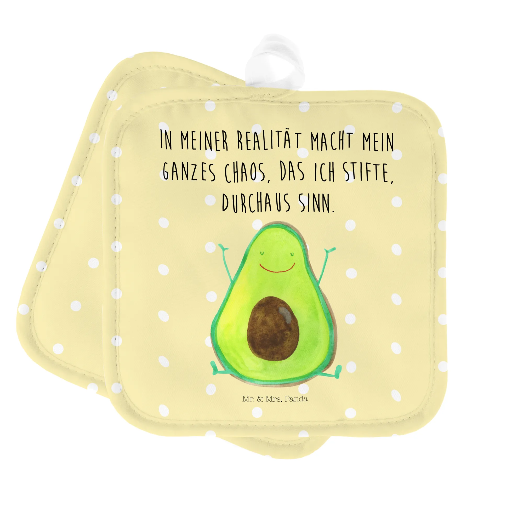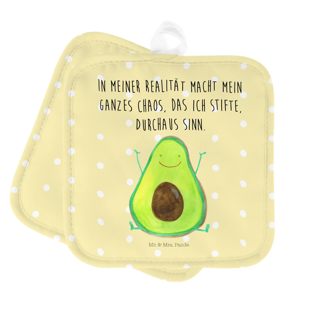 2er Set Topflappen Avocado Happy - mit Spruch - Gelb Pastell