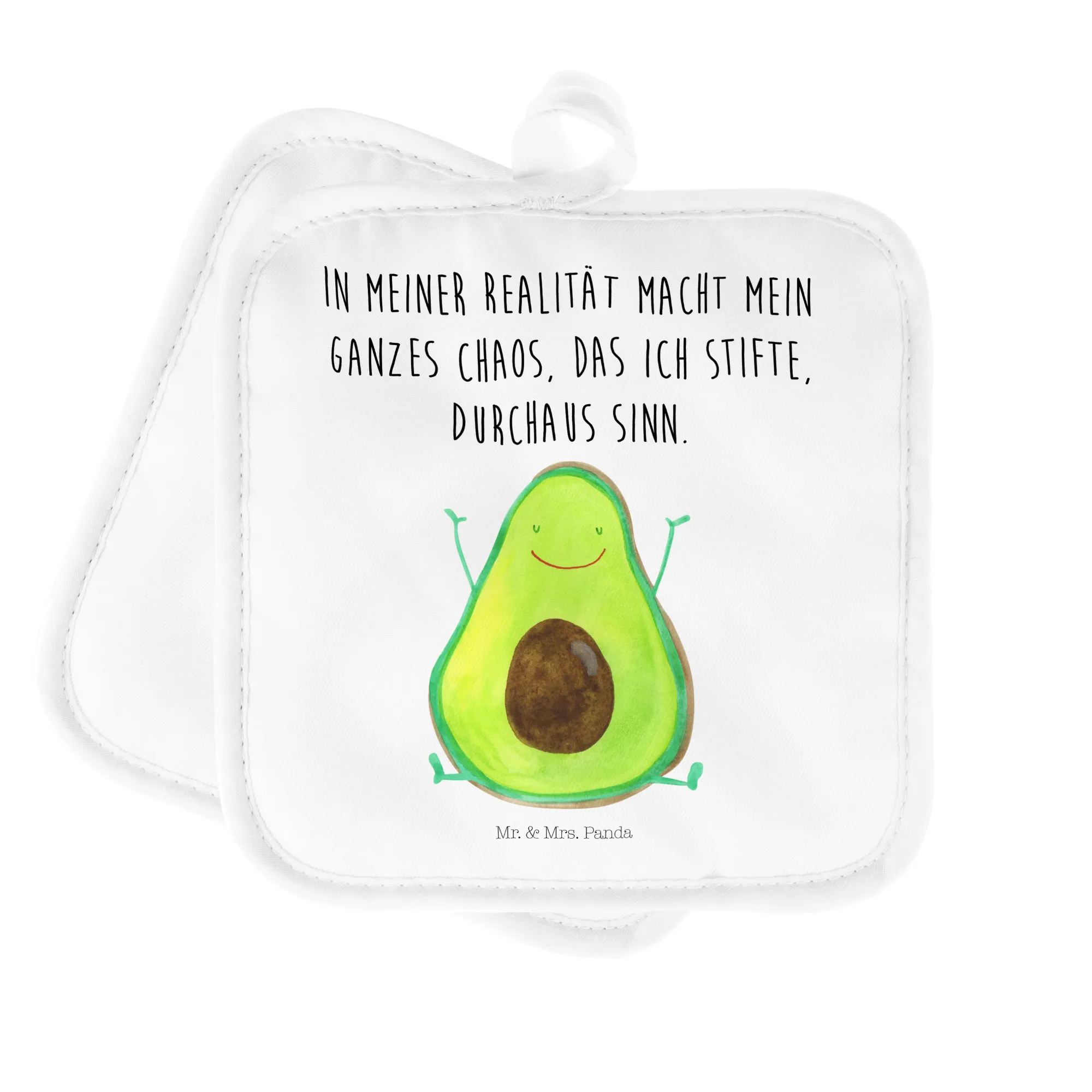 Die liebevoll gestalteten Topflappen wurden hochwertig bedruckt und zeigen eine fröhliche Avocado, die begeistert ihre Arme nach oben hält. Mit einem charmanten Slogan "In meiner Realität macht mein ganzes Chaos, das ich stifte, durchaus Sinn." zaubern sie jedem ein Lächeln ins Gesicht.