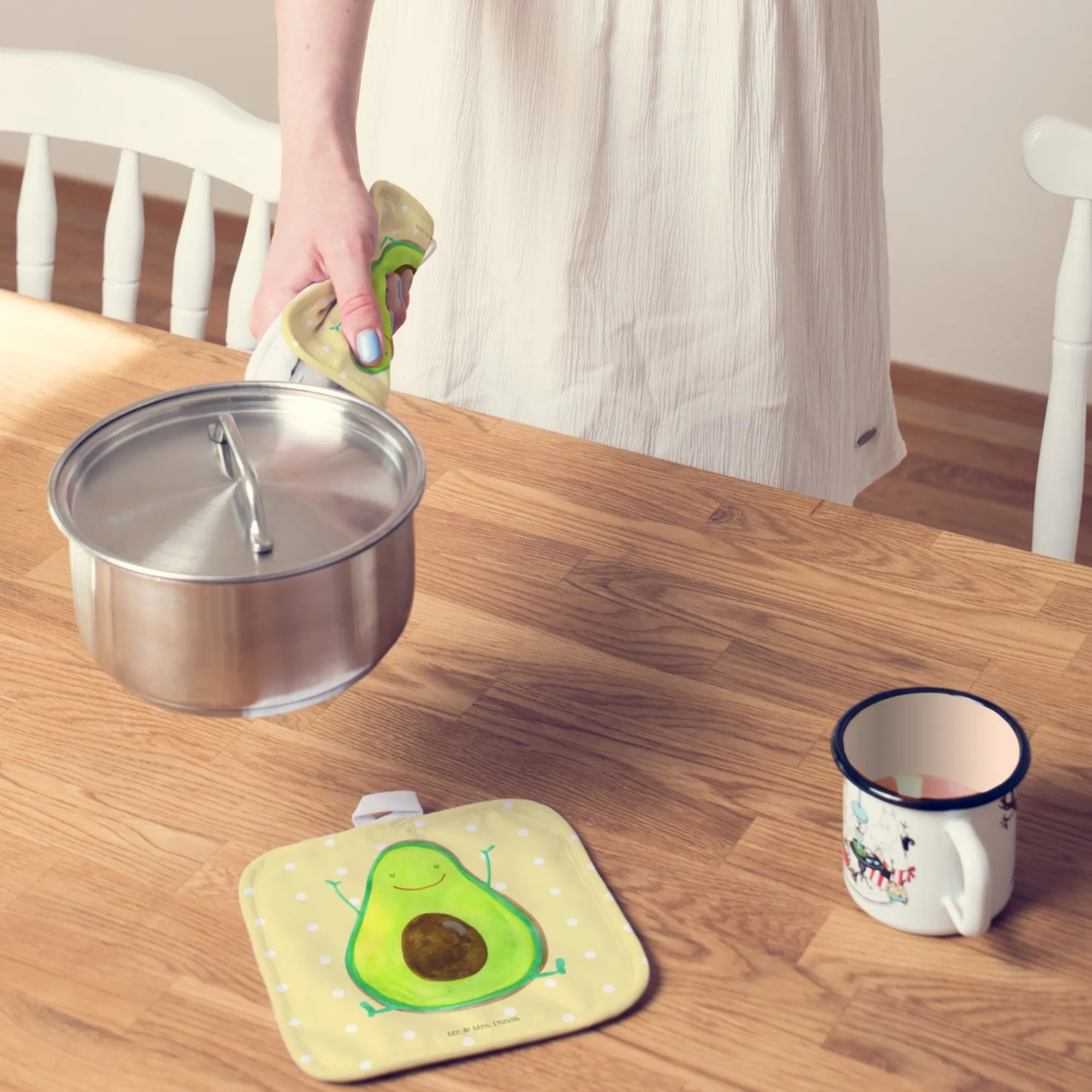 Entdecke das perfekte Geschenk für jeden Kochliebhaber und Avocado-Fan mit dem 2er Set Topflappen Avocado Happy von Mr. & Mrs. Panda! Diese zwei wunderschönen Topflappen sind nicht nur ein praktisches Küchenutensil, sondern auch ein echter Hingucker in deiner Küche. Mit ihrem fröhlichen Avocado-Motiv bringt dieses Set einen Hauch von Lebensfreude und Optimismus in dein Zuhause. Die Avocado, die begeistert ihre Arme nach oben hält, versprüht positive Energie und bringt ein Lächeln auf dein Gesicht, auch während des Kochens.