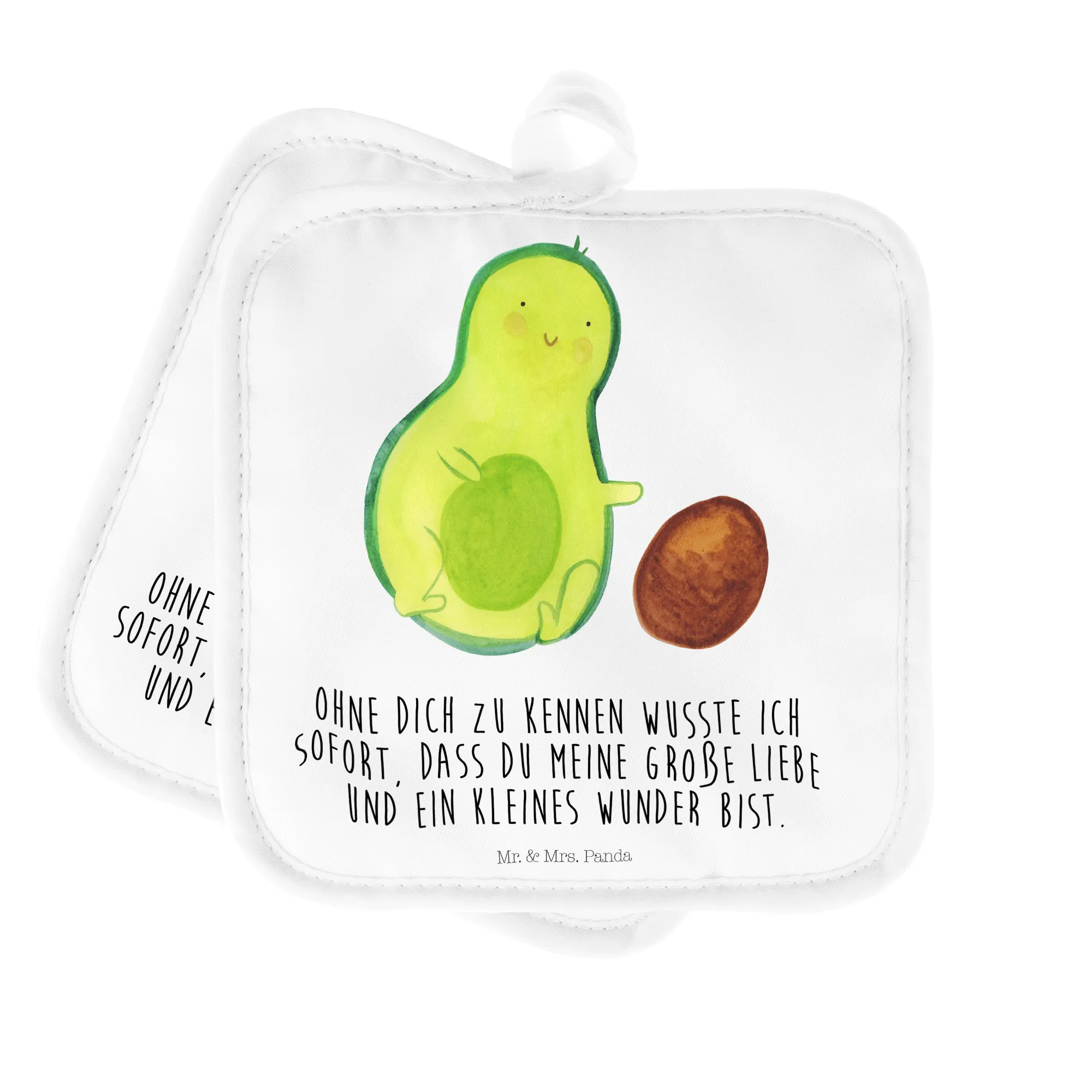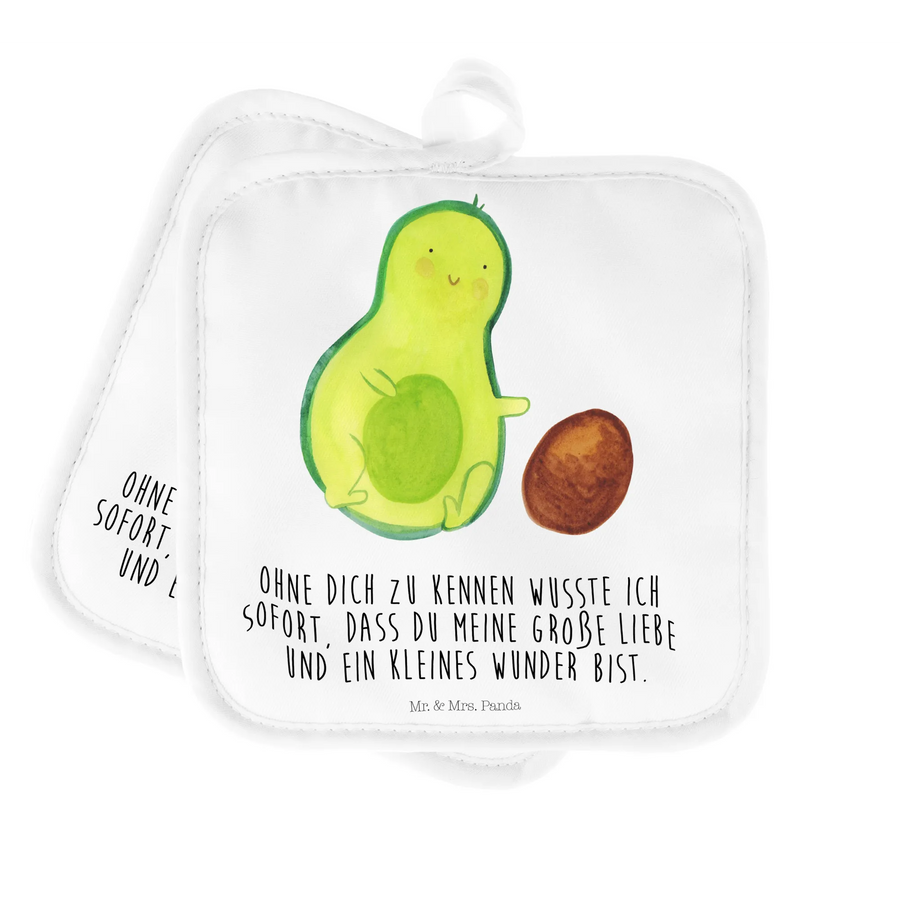 2er Set Topflappen Avocado Kern rollt - mit Spruch - Weiß