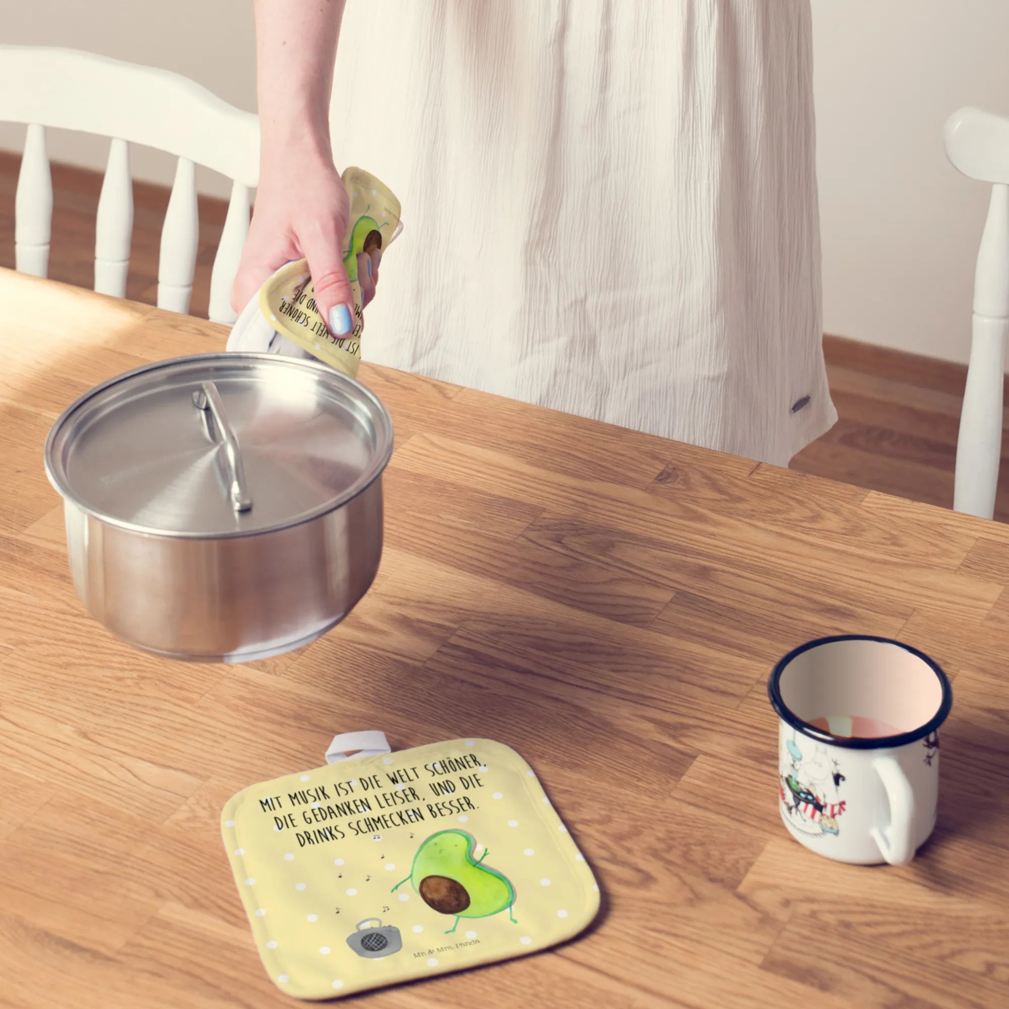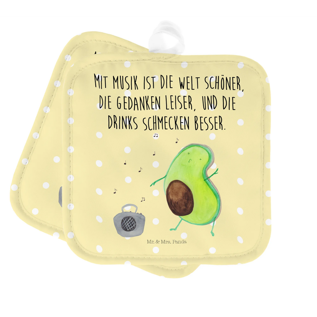 Entdecke das bezaubernde 2er Set Topflappen mit dem fröhlichen Motiv "Avocado tanzt" von Mr. & Mrs. Panda! Diese hochwertigen Topflappen sind nicht nur super praktisch, sie bringen auch Freude in jede Küche. Mit einer niedlichen Avocado, die vor einem Ghettoblaster zur Musik tanzt, verleihen sie deinem Kochbereich eine positive Ausstrahlung.