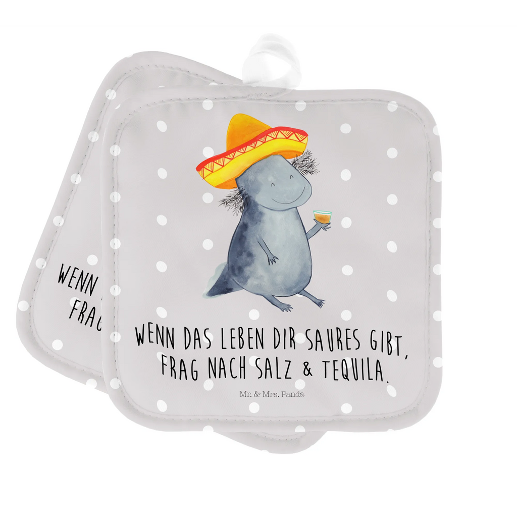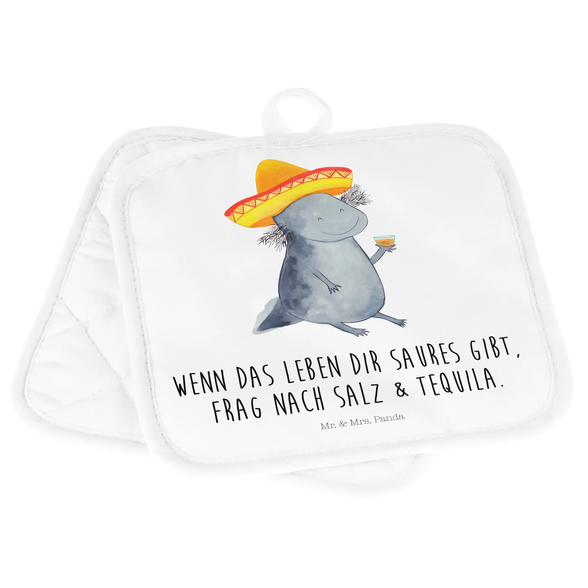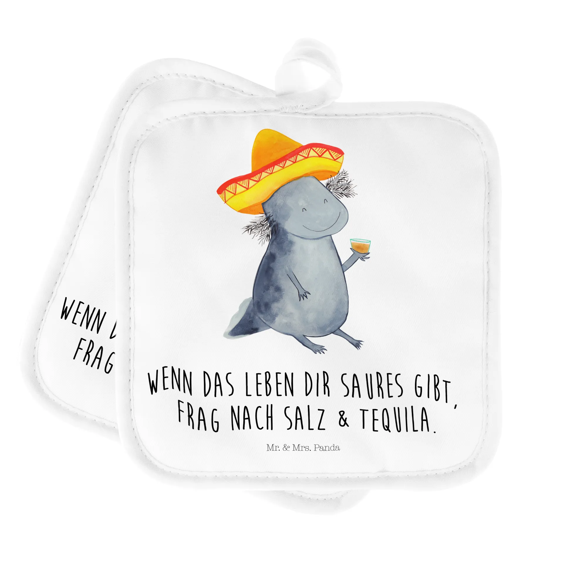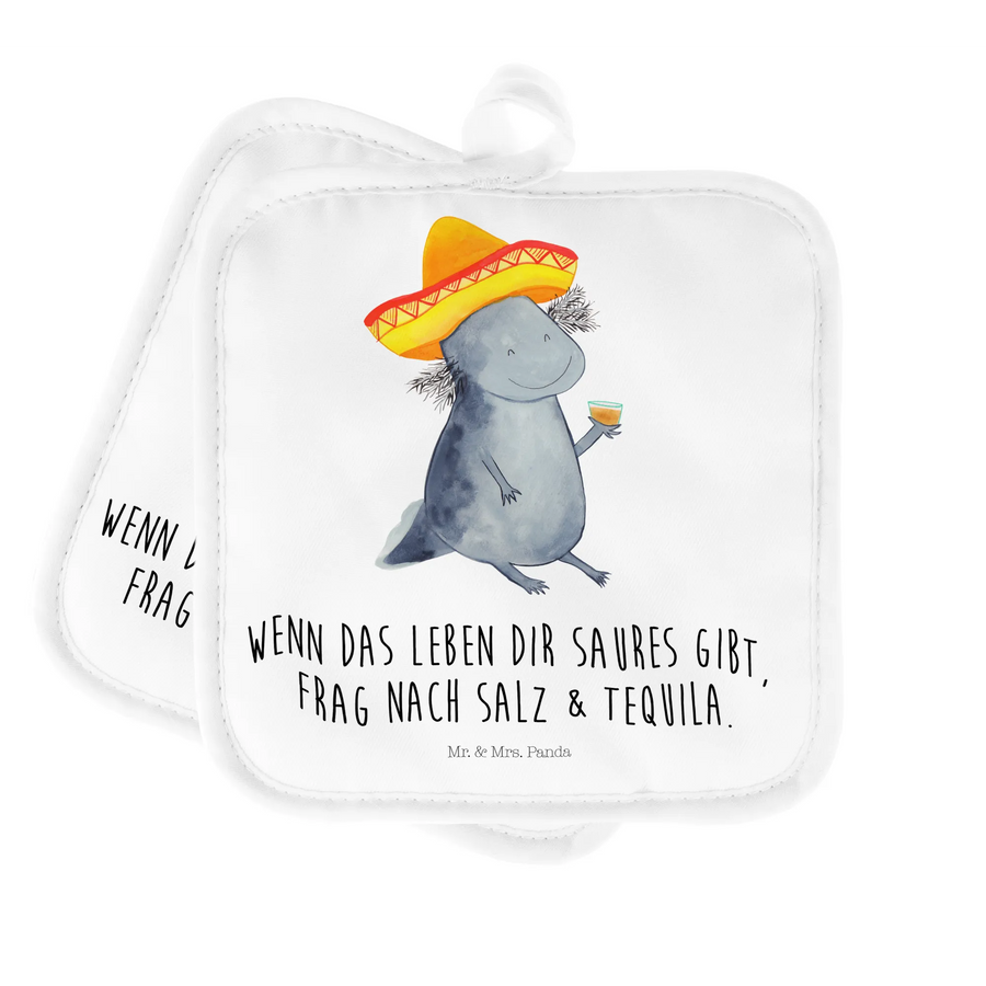 2er Set Topflappen Axolotl Tequila - mit Spruch - Weiß