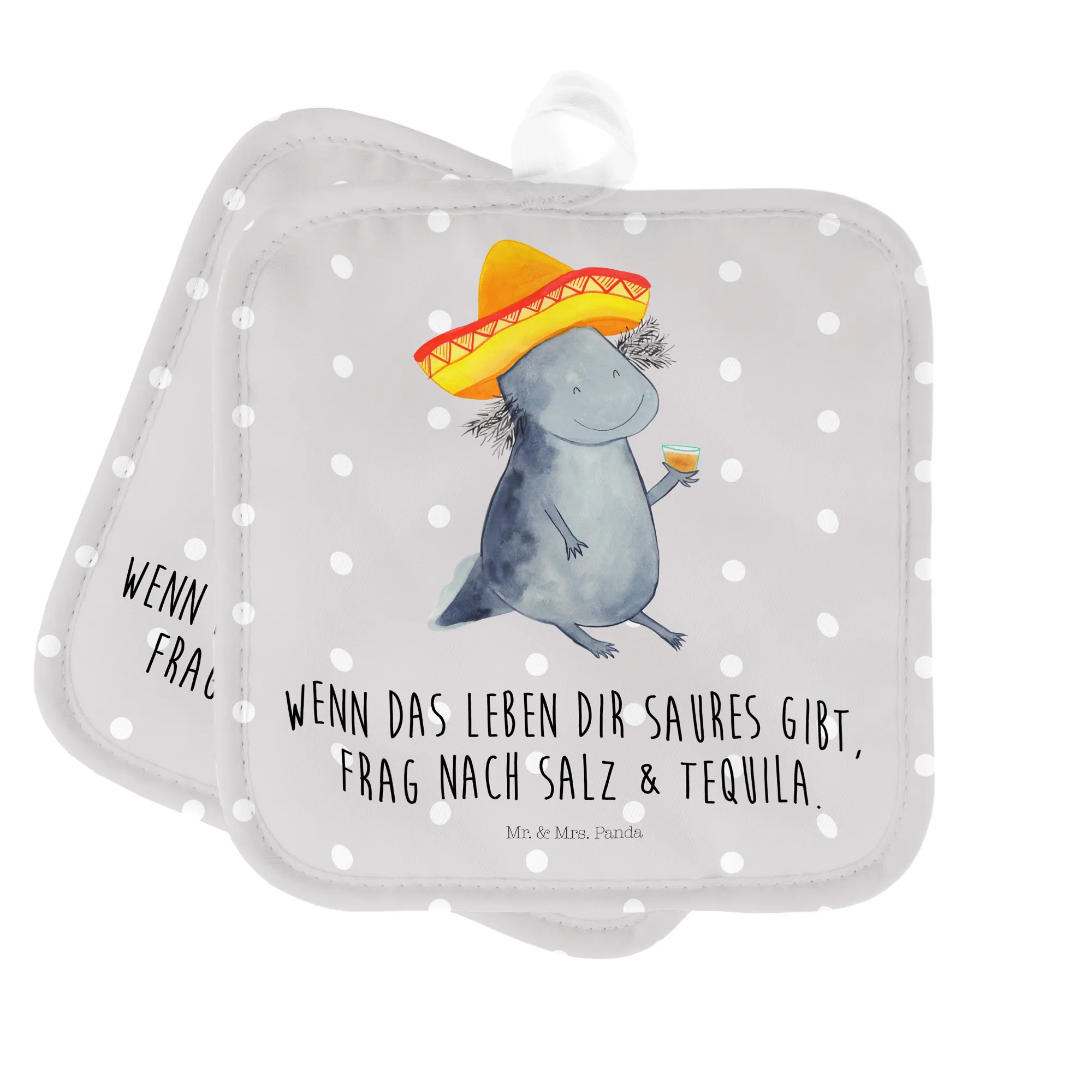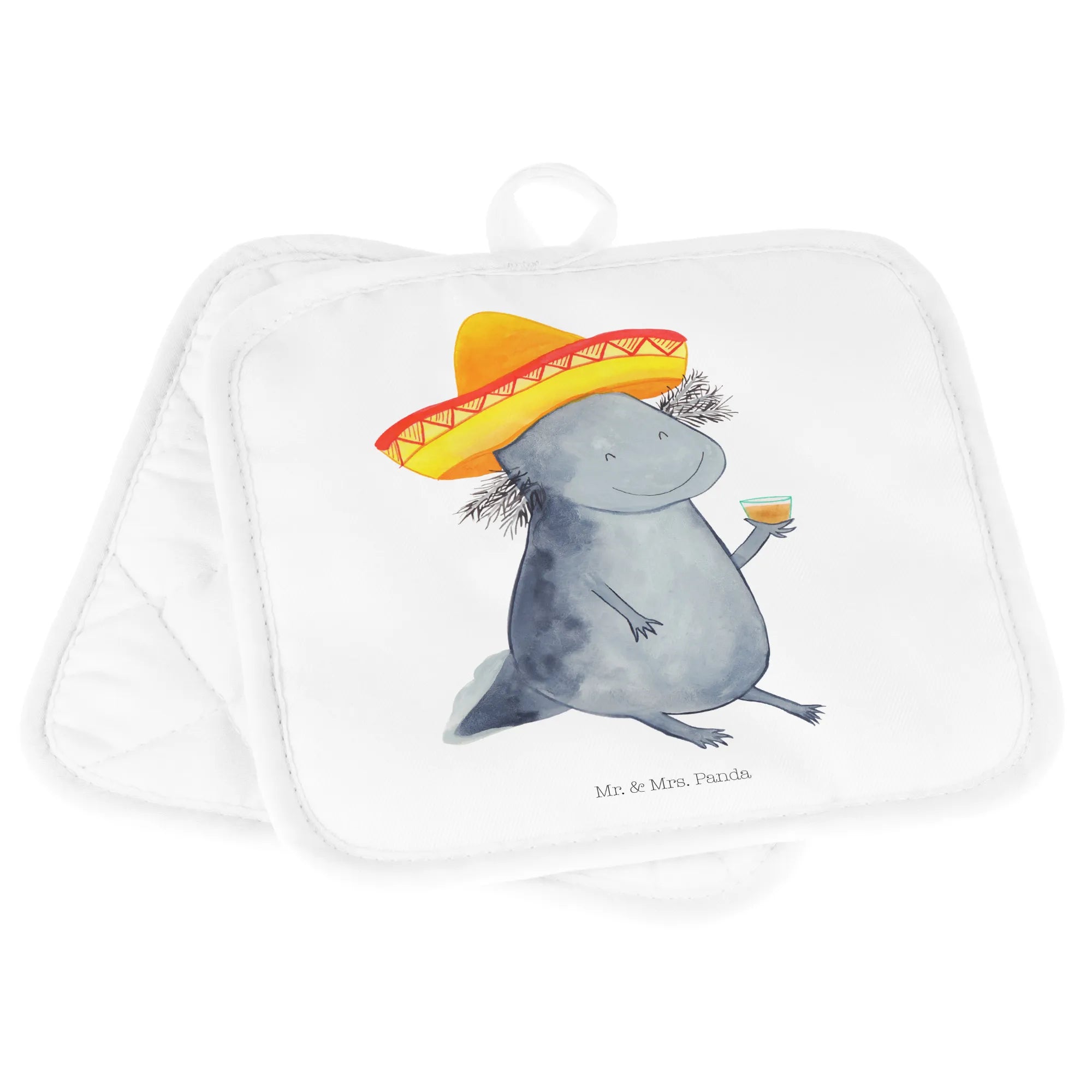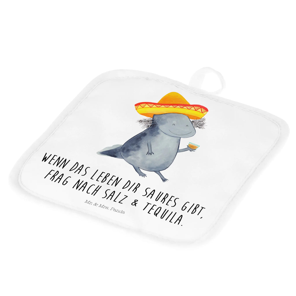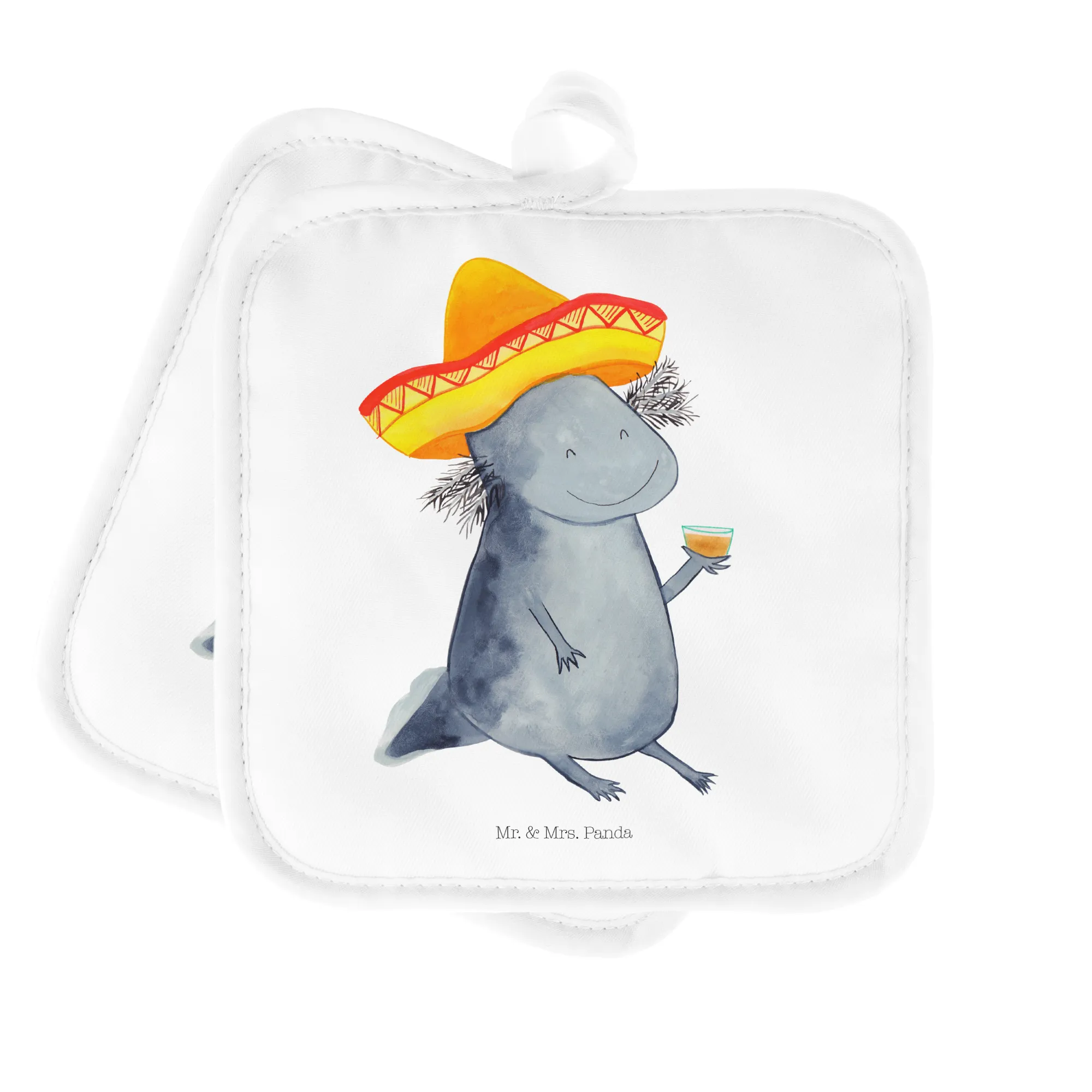 2er Set Topflappen Axolotl Tequila - mit Spruch - Weiß