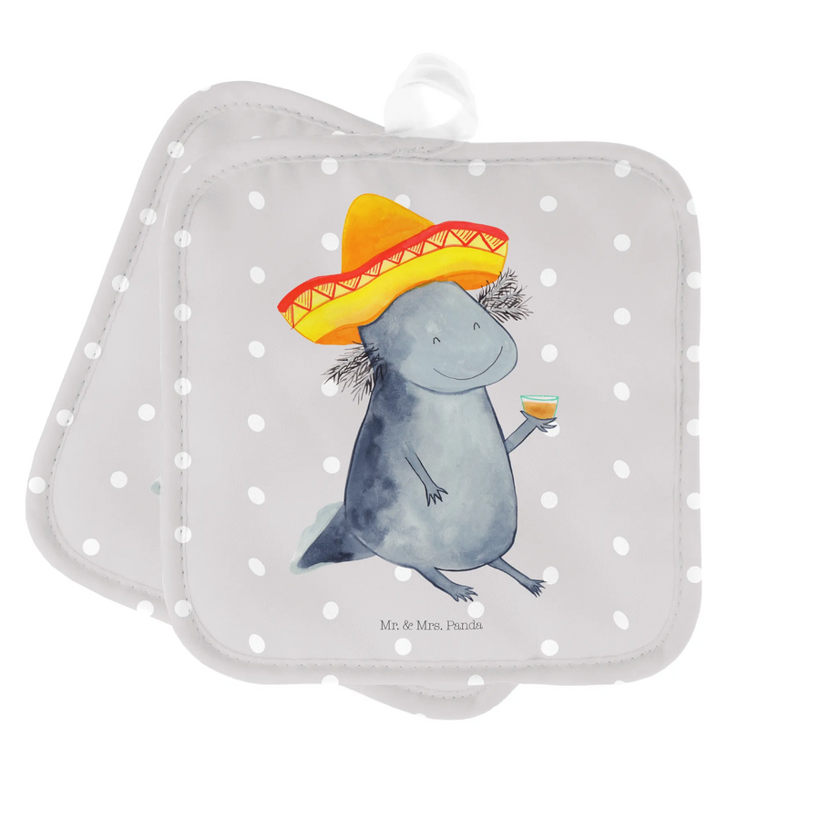 2er Set Topflappen Axolotl Tequila - ohne Spruch - Grau Pastell