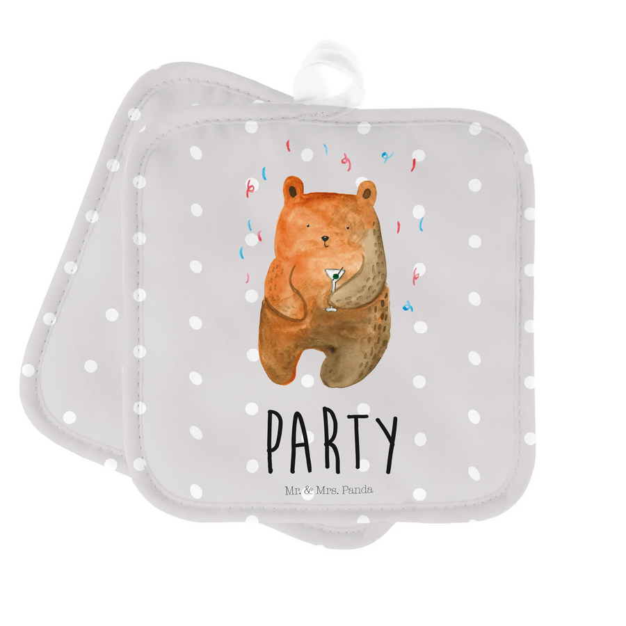 2er Set Topflappen Bär Party - mit Spruch - Grau Pastell
