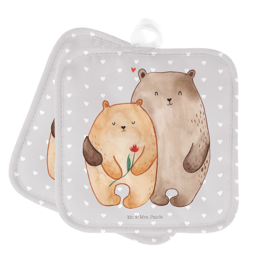 2er Set Topflappen Bären Liebe - ohne Spruch - Grau Pastell