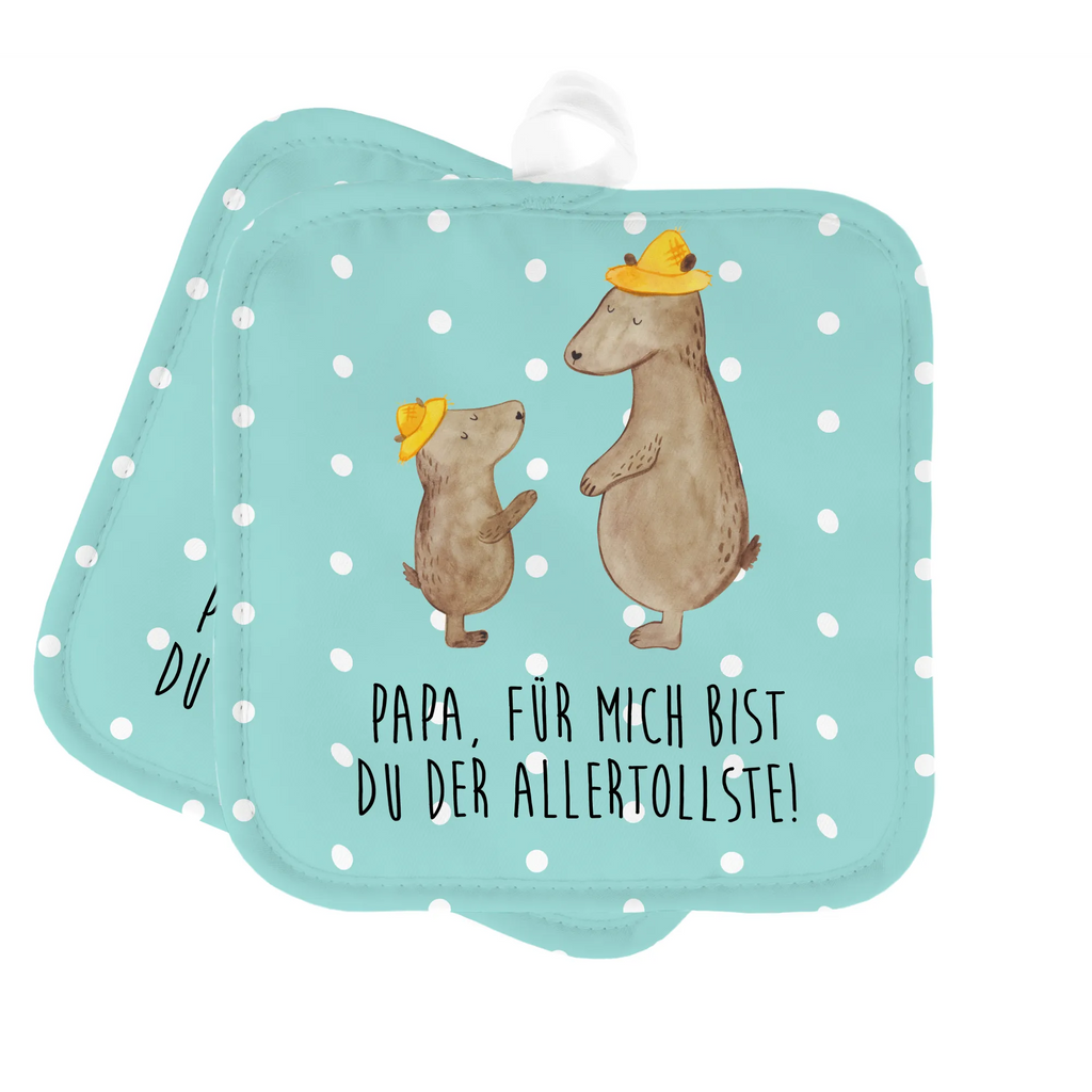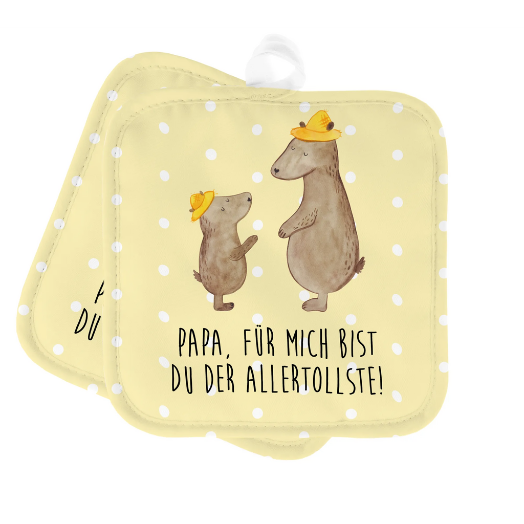 Wenn du auf der Suche nach dem perfekten Geschenk für einen Vater oder Papa bist, dann sind die zwei wunderschönen Topflappen mit dem süßen Motiv "Bären mit Hut" von Mr. & Mrs. Panda genau das Richtige für dich! Diese Topflappen zaubern nicht nur ein Lächeln auf das Gesicht deines Lieblingsmenschen, sondern sind auch super praktisch beim Kochen oder Backen. Das hochwertige Design mit den entzückenden Bären symbolisiert die Liebe zur Familie und ist ideal für jeden Anlass, sei es Vatertag, Muttertag oder einfach nur, um einem besonderen Menschen zu zeigen, wie wichtig er dir ist.