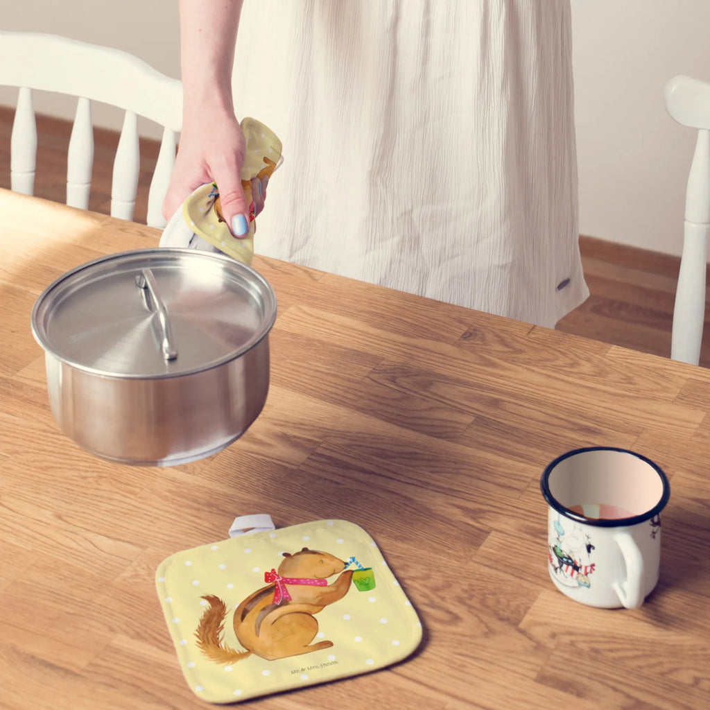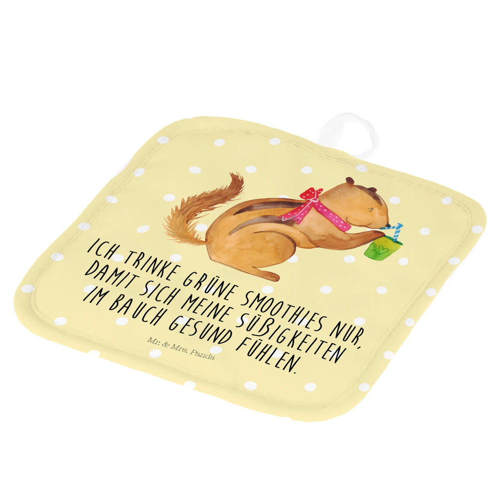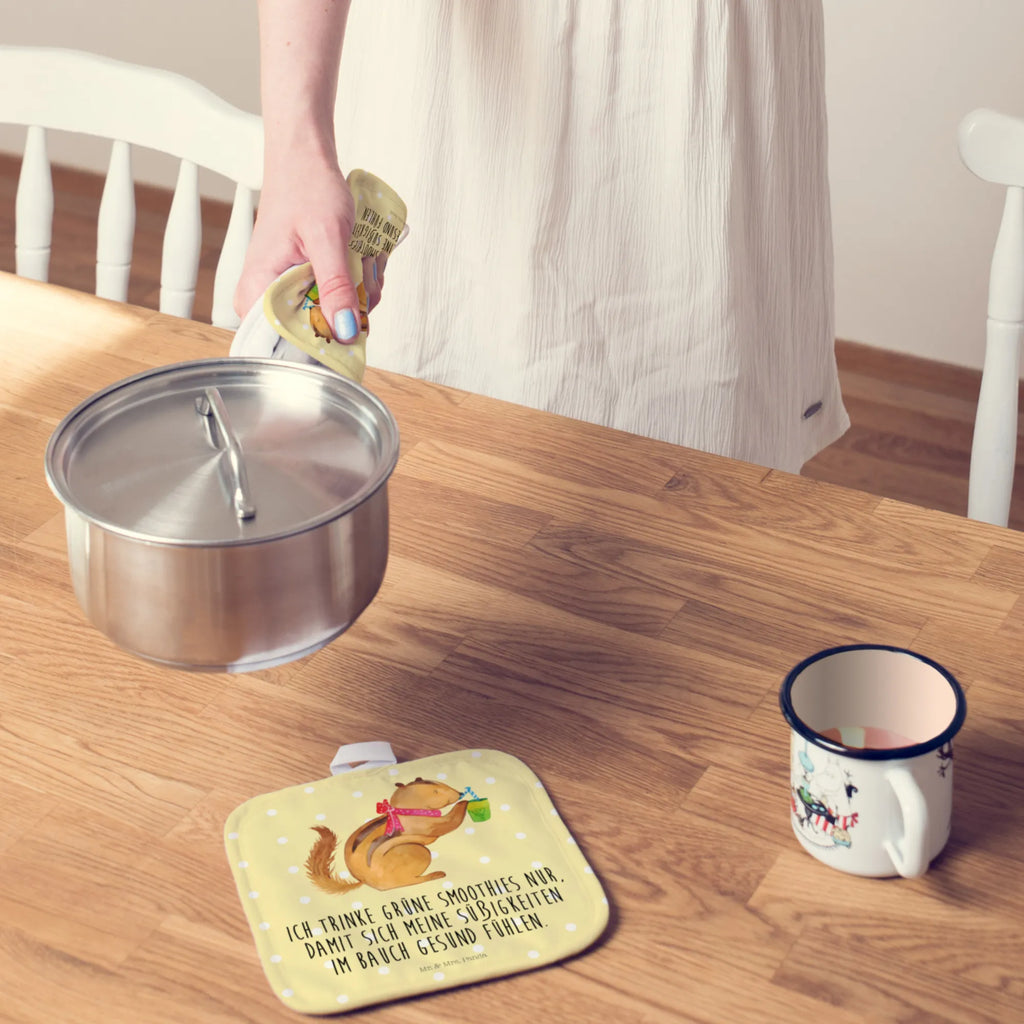 2er Set Topflappen Eichhörnchen Smoothie - mit Spruch - Gelb Pastell