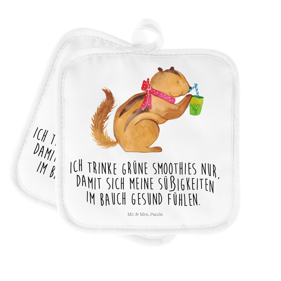 2er Set Topflappen Eichhörnchen Smoothie - mit Spruch - Weiß