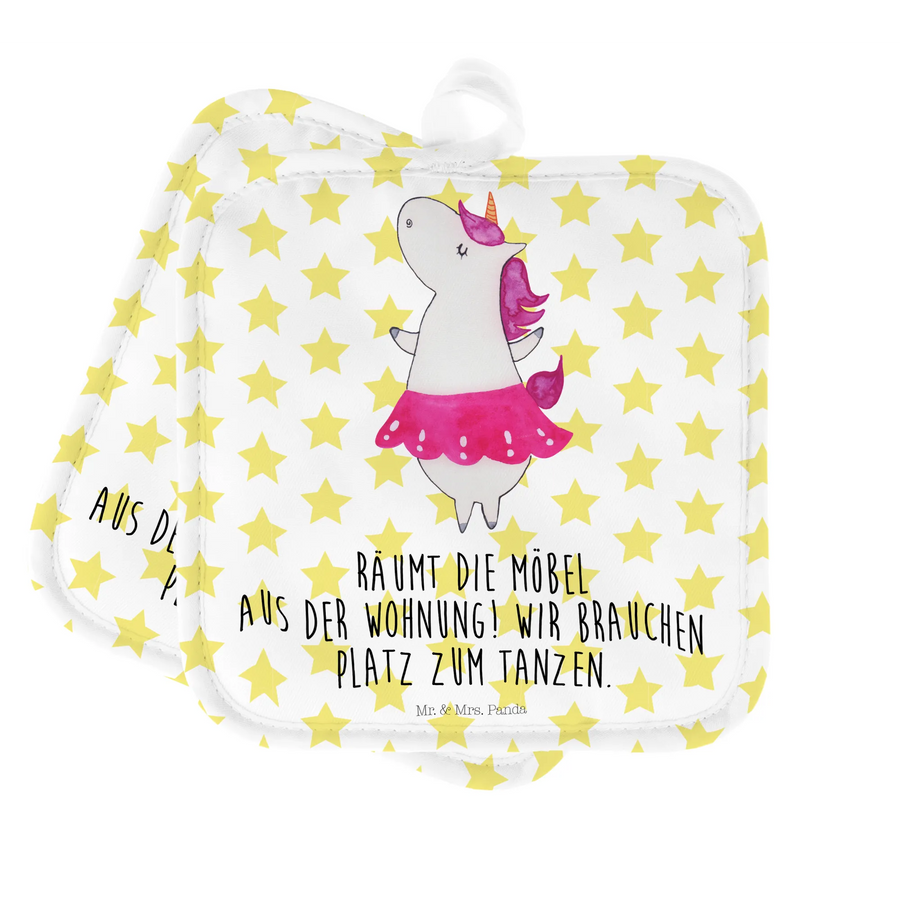 Entdecke die zauberhaften 2er Set Topflappen mit dem magischen Einhorn Ballerina-Motiv von Mr. & Mrs. Panda! Diese wunderbaren Topflappen sind nicht nur praktisch, sondern auch ein wahrer Hingucker in jeder Küche. Hergestellt aus hochwertigem, hitzebeständigem Material, bieten sie eine ideale Isolation gegen Hitze und sind perfekt für alle, die gerne kochen und backen.