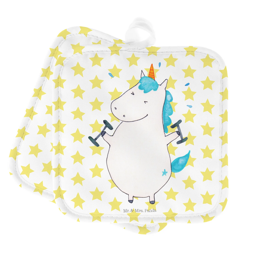 2er Set Topflappen Einhorn Fitness - ohne Spruch - Weiß