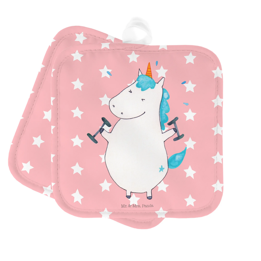 2er Set Topflappen Einhorn Fitness - ohne Spruch - Rot Pastell