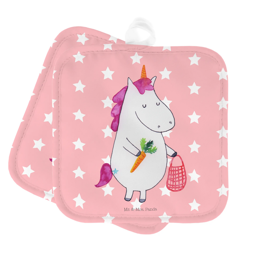 2er Set Topflappen Einhorn Gemüse - ohne Spruch - Rot Pastell
