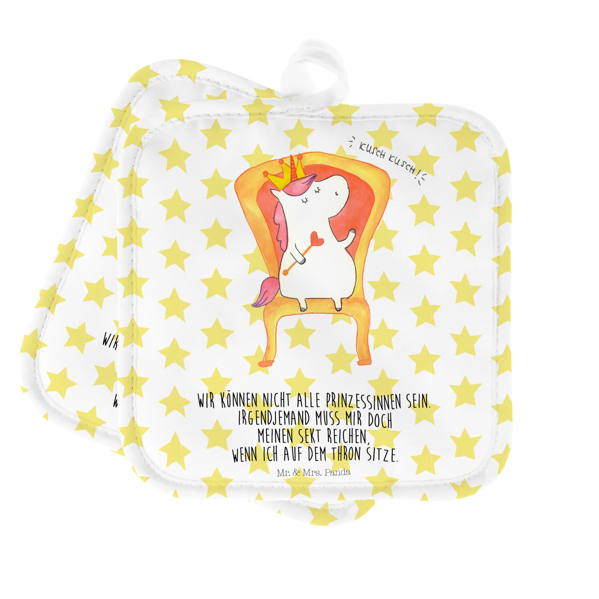 Willkommen in der Welt von Mr. & Mrs. Panda, wo Design auf Funktionalität trifft. Unsere 2er Set Topflappen mit einer Größe von 170 mm x 170 mm und einer Dicke von 5 mm sind deine perfekten Begleiter beim Umgang mit heißen Speisen. Aus 100% Polyester gefertigt, überzeugen sie mit außergewöhnlicher Hitzebeständigkeit und sind bei 30°C leicht zu reinigen. Die einseitigen Druckmotive und Sprüche bringen nicht nur Farbe in deine Küche, sondern zaubern auch ein Lächeln auf dein Gesicht. Dank der praktischen Aufhängeschlaufen sind sie stets griffbereit. Egal ob als schicker Topfuntersetzer oder handlicher Ofenhandschuh, mit diesen Topflappen von Mr. & Mrs. Panda machst du jede Mahlzeit zum Vergnügen.