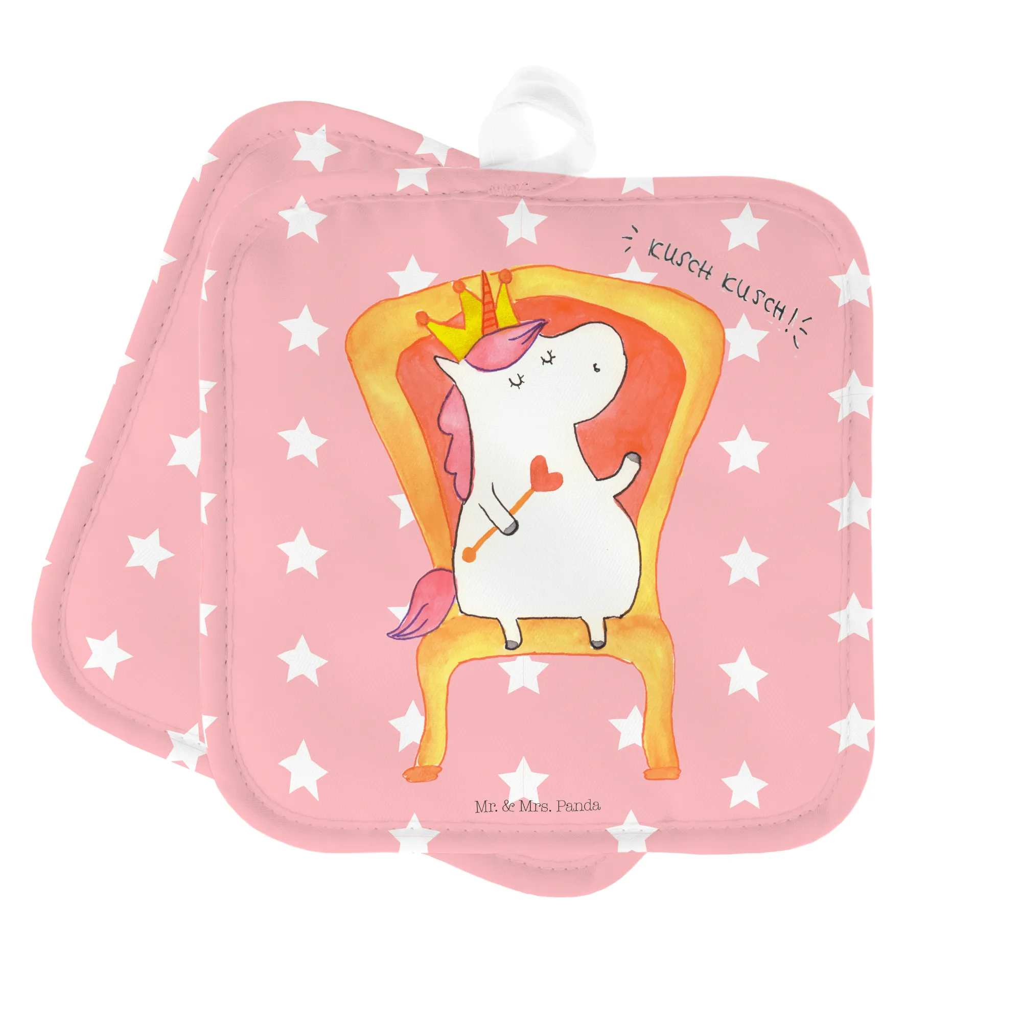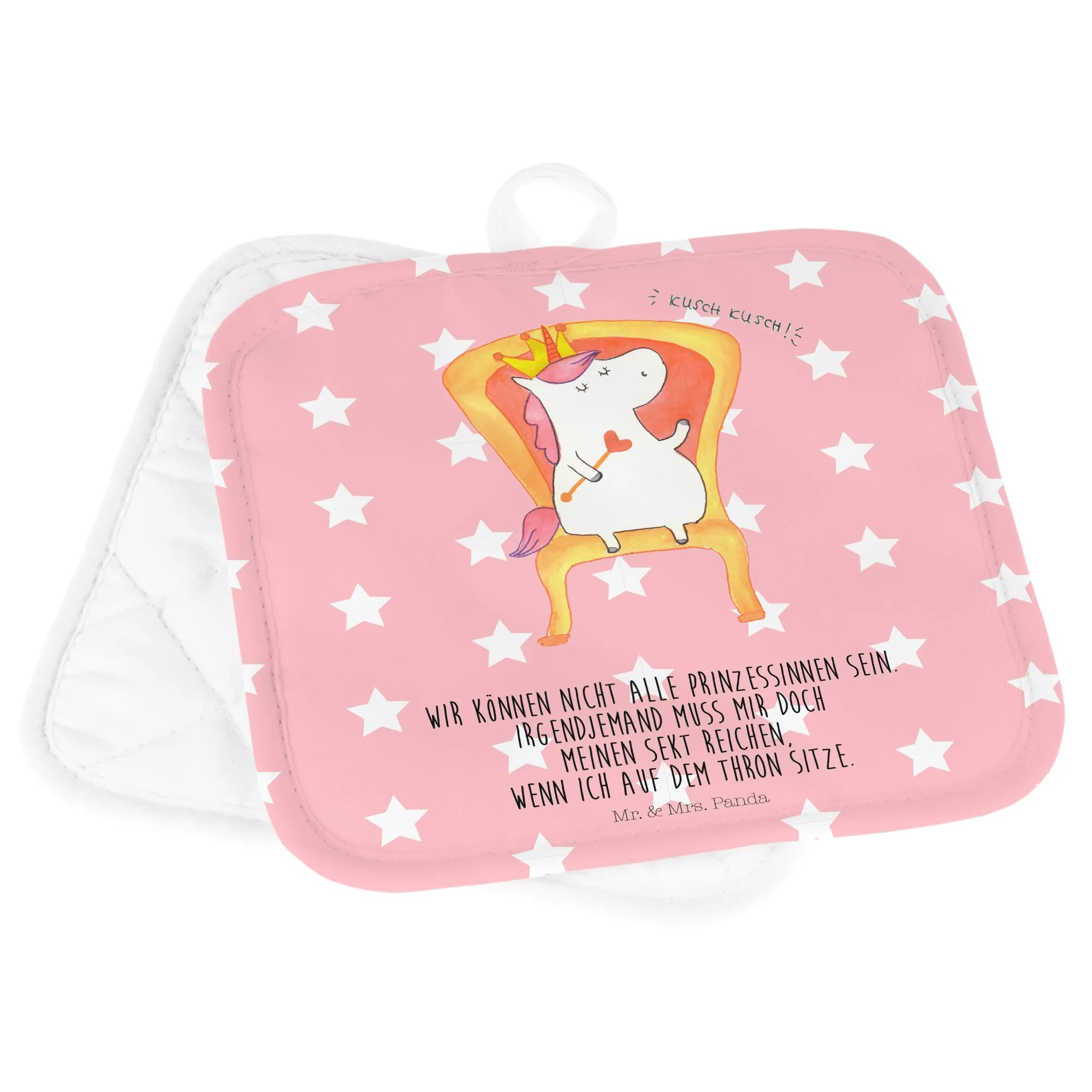 2er Set Topflappen Einhorn König - mit Spruch - Rot Pastell